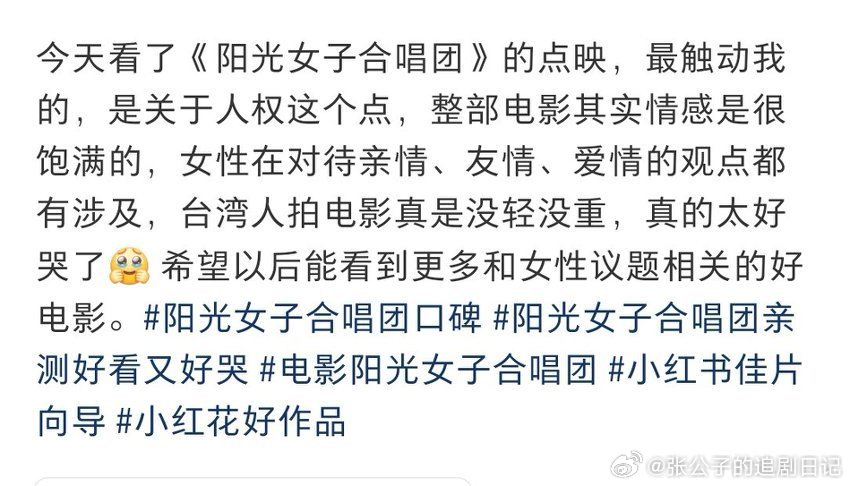 阳光女子合唱团点映口碑电影《阳光女子合唱团》首轮点映口碑爆哭!陈意涵惠贞送走女儿这段哭戏太绝,真实又戳心,看完直接泪崩!!!