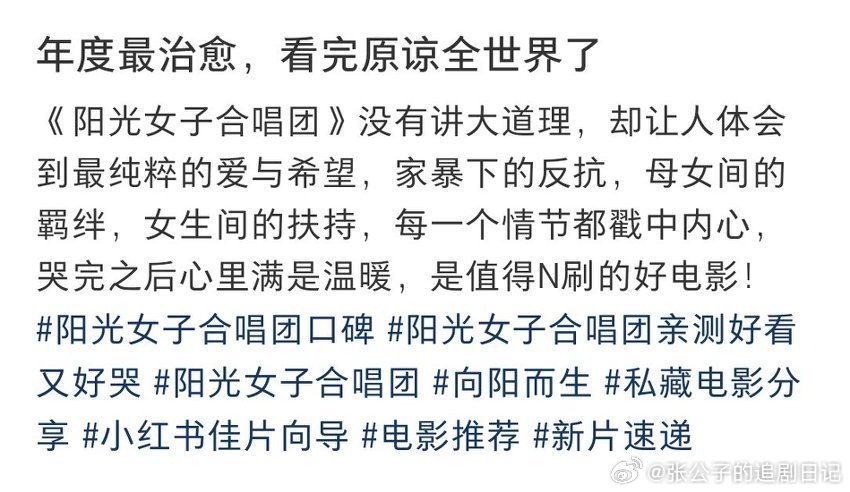 阳光女子合唱团点映口碑电影《阳光女子合唱团》首轮点映口碑爆哭!陈意涵惠贞送走女儿