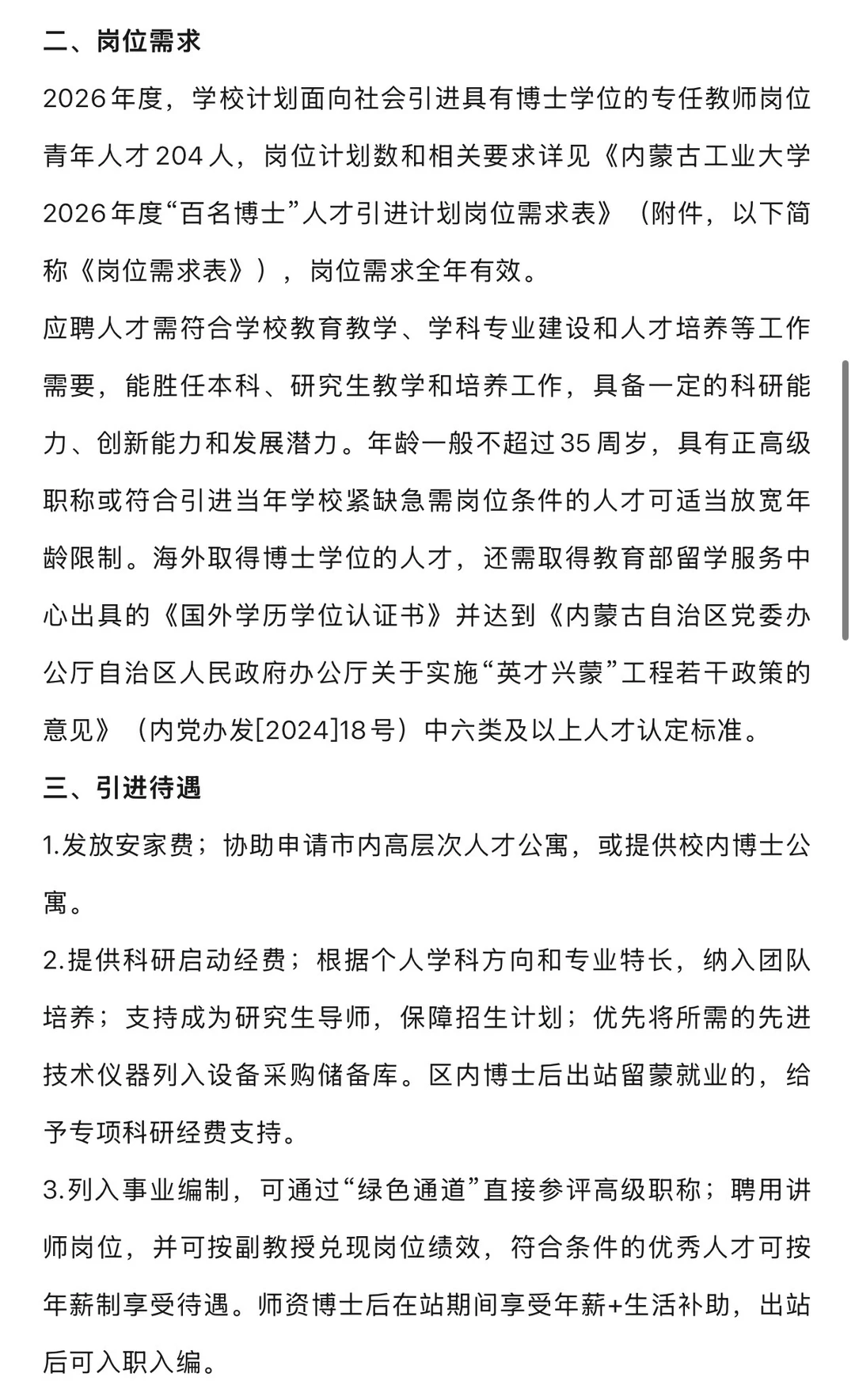 内蒙古工业大学招聘200名博士