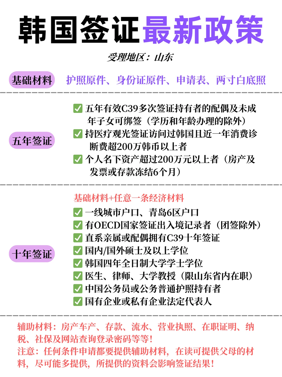 韩国签证新规整理好了,单次/五年/十年都有,重点说说十年签的大城市户籍通道。🇰🇷