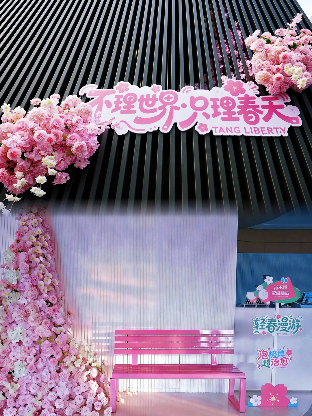 5.拍照打卡:氛围感满满的粉色花束是春日限定美陈,拍照打卡超出片!