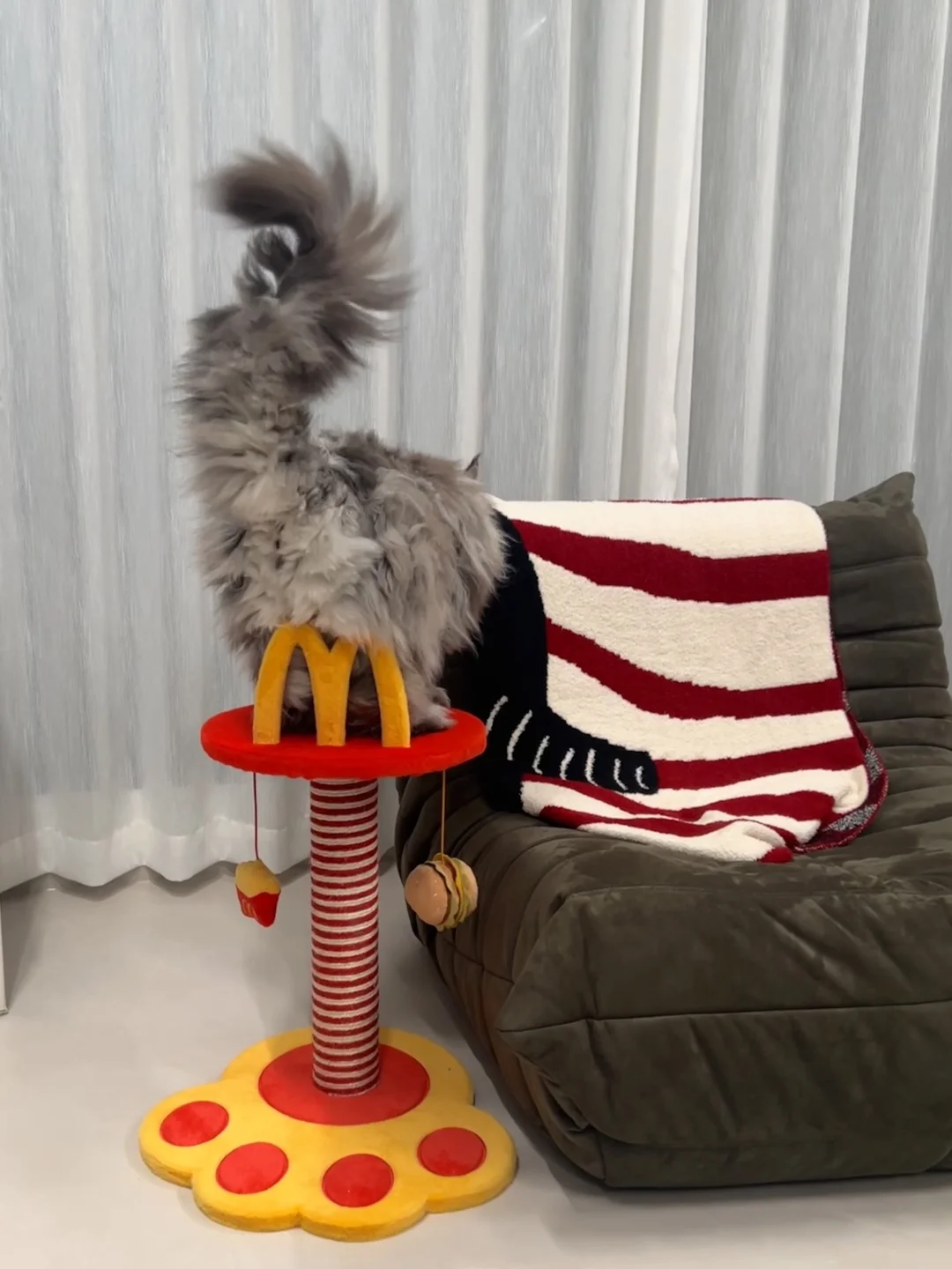 边几🟰猫抓柱 咪,借用一下你的猫抓柱! · [捂嘴笑R]当代懒人装修: 越用越好用哈哈哈哈哈[笑哭了R] 我宣布!猫抓柱正式兼任沙发边几 看电视还会有猫猫保安替我保驾护航