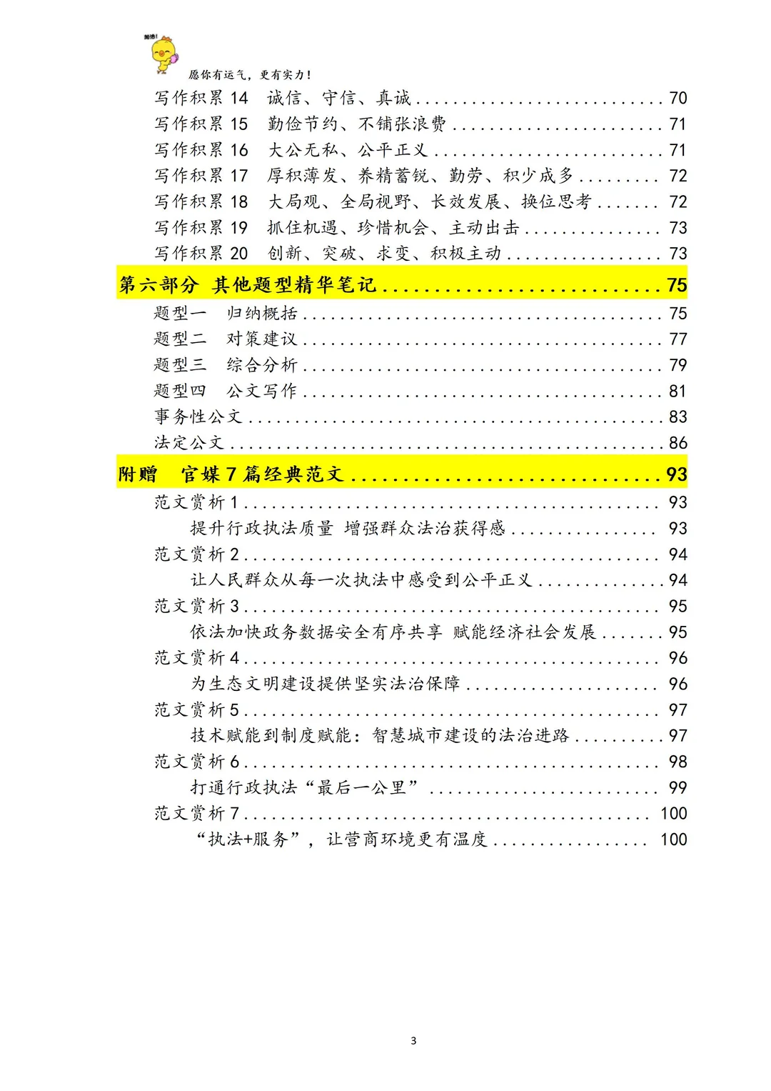 ✅《执法专项》汇总了近5年真题,执法类的考卷基本聚焦到这3个主题,执法、治理、民生,尤其是执法类,考察的更是重中之重,分论点重合非常严重,所以很好预判考察方向。