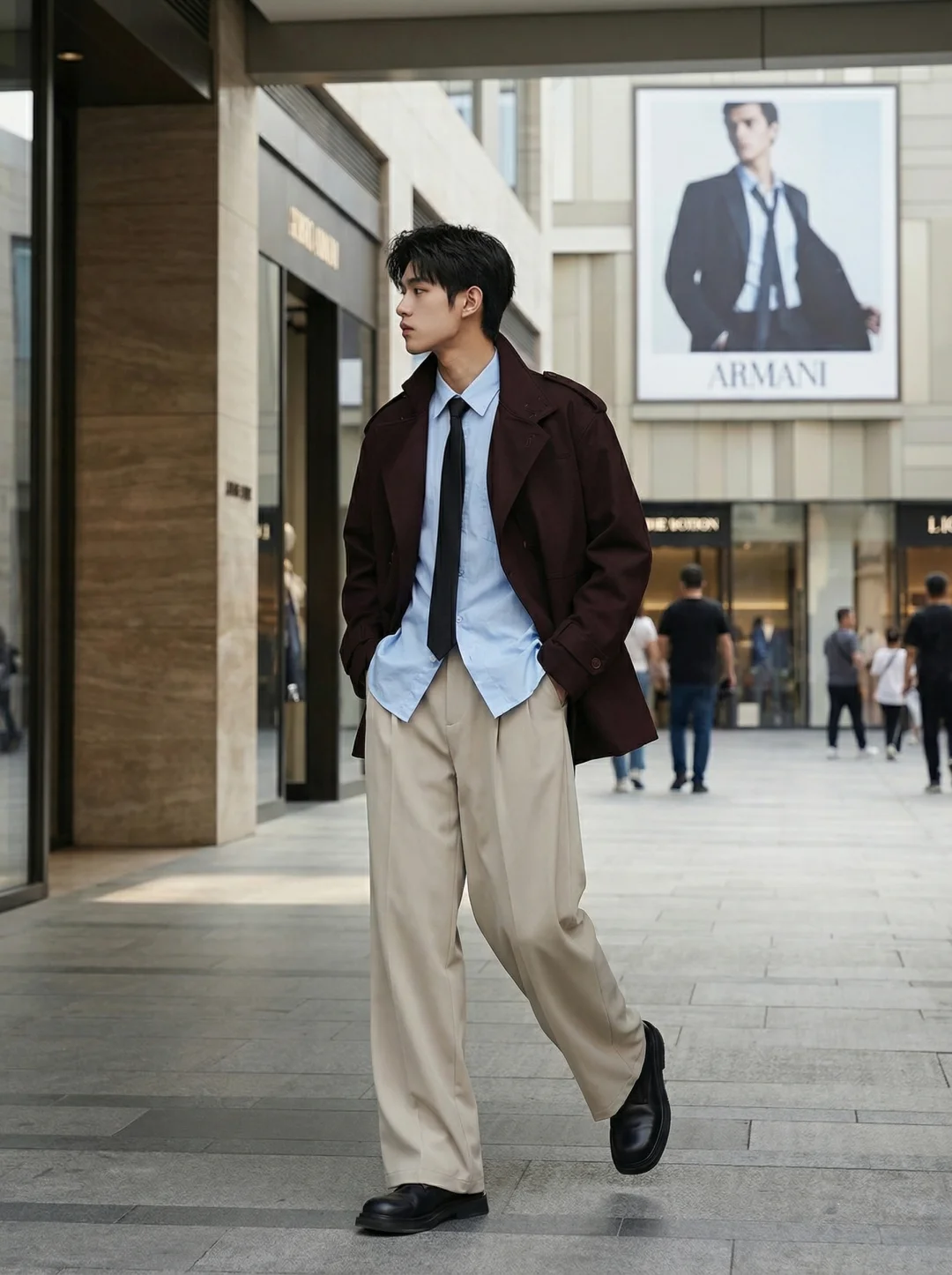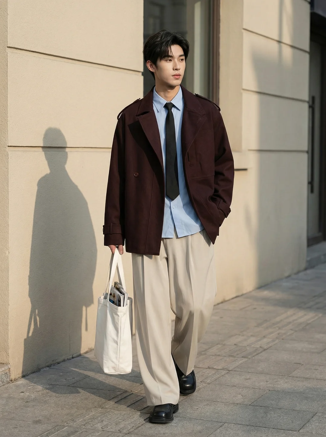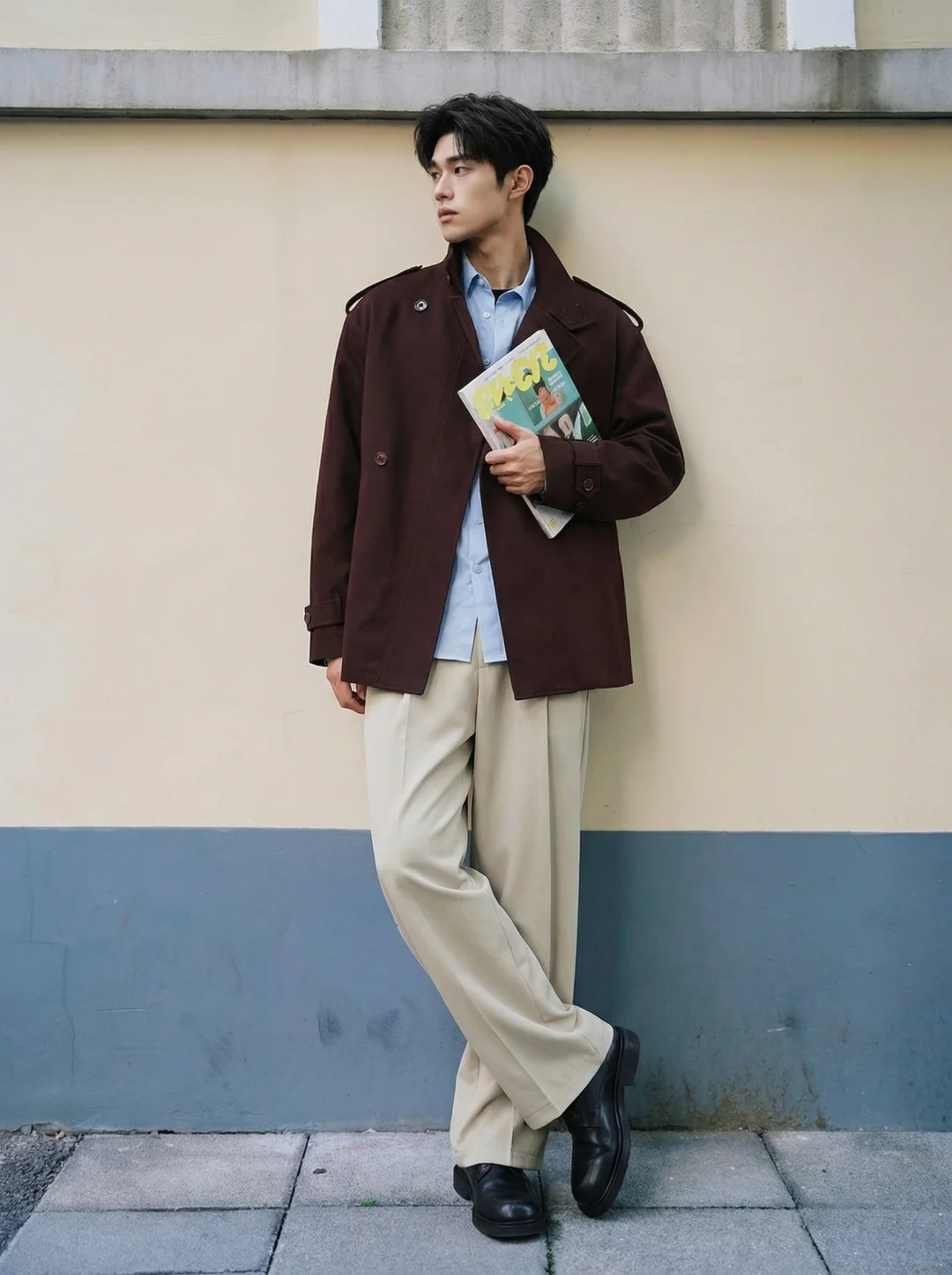 韩系男大雅痞即视感显高风衣穿搭