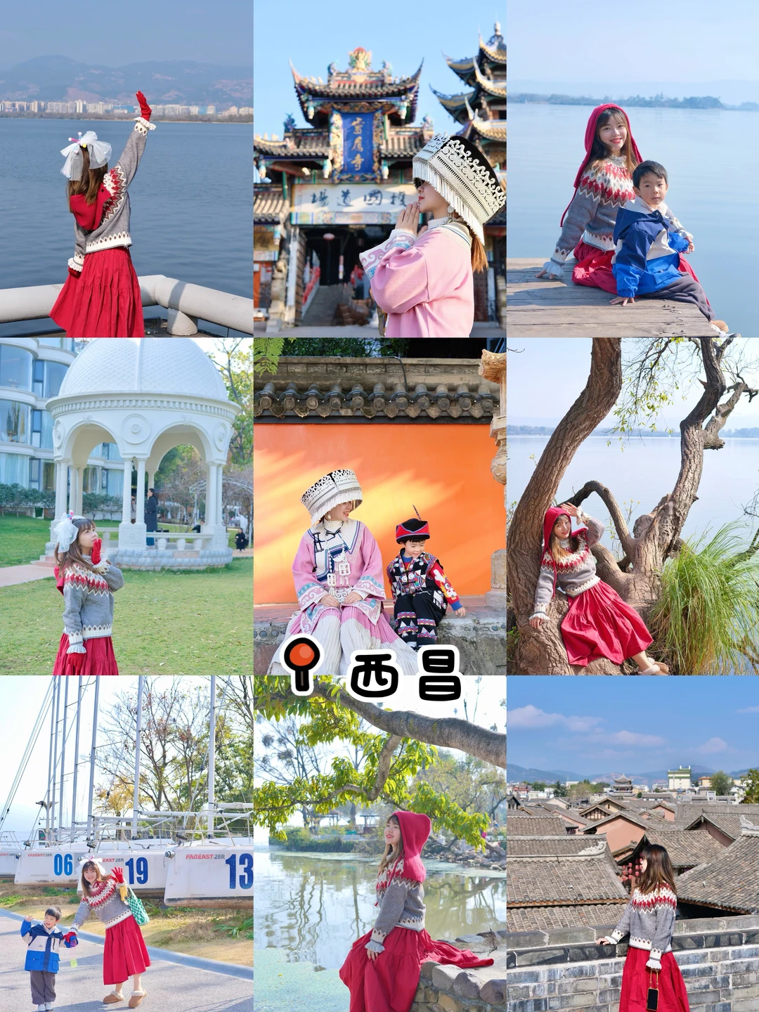 去大石板村灵鹰寺拍彝族服装美照,观鸟岛湿地公园喂海鸥,拍歪脖子树,邛海宾馆喝下午茶,金鳞沙滩看日落,唐园看夜景,逛建昌古镇,月色风情小镇拍美照