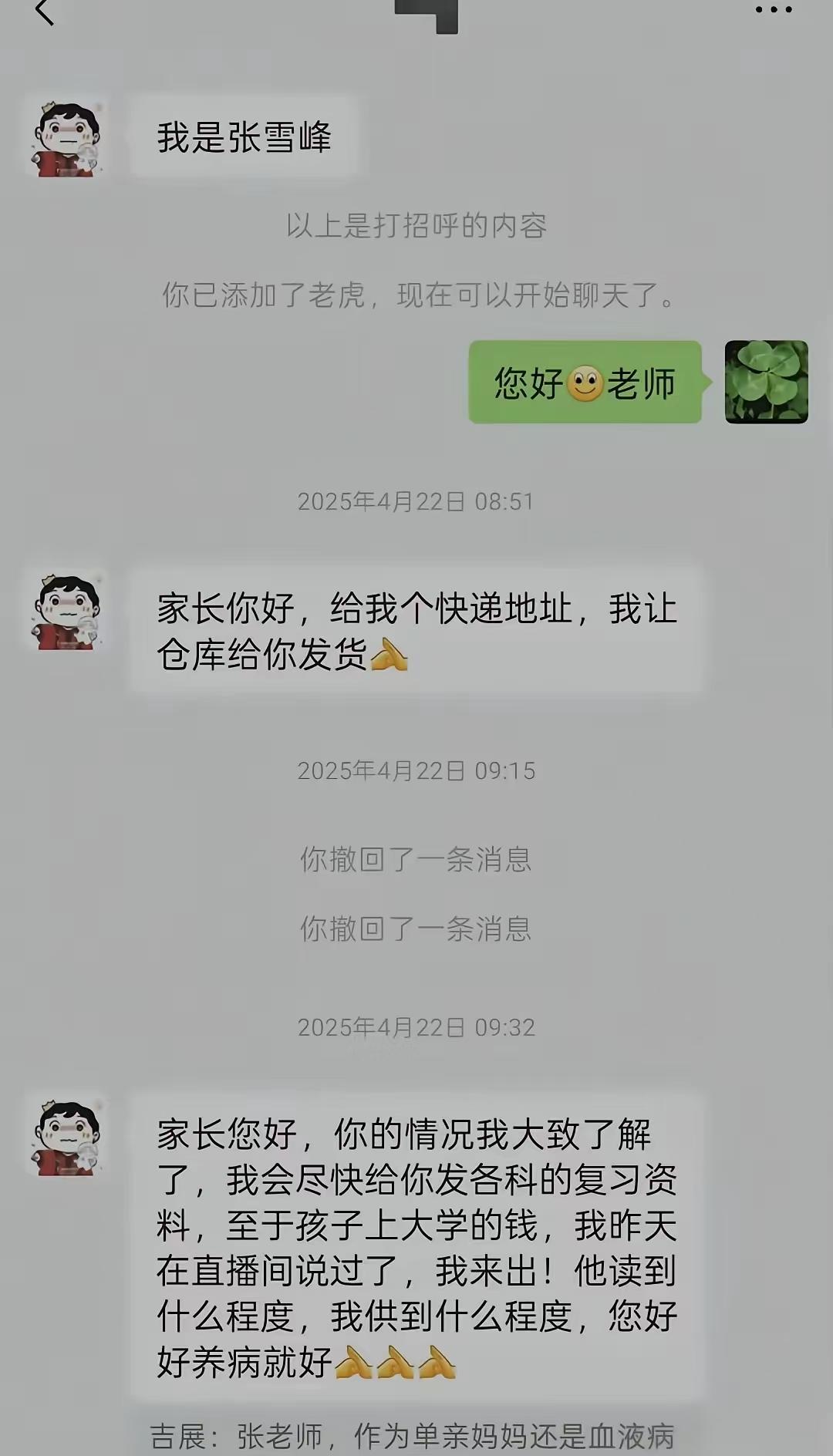 家长晒出去年与张雪峰老师的聊天记录。就是不花钱买服务,多听听直播切片也基本知道怎