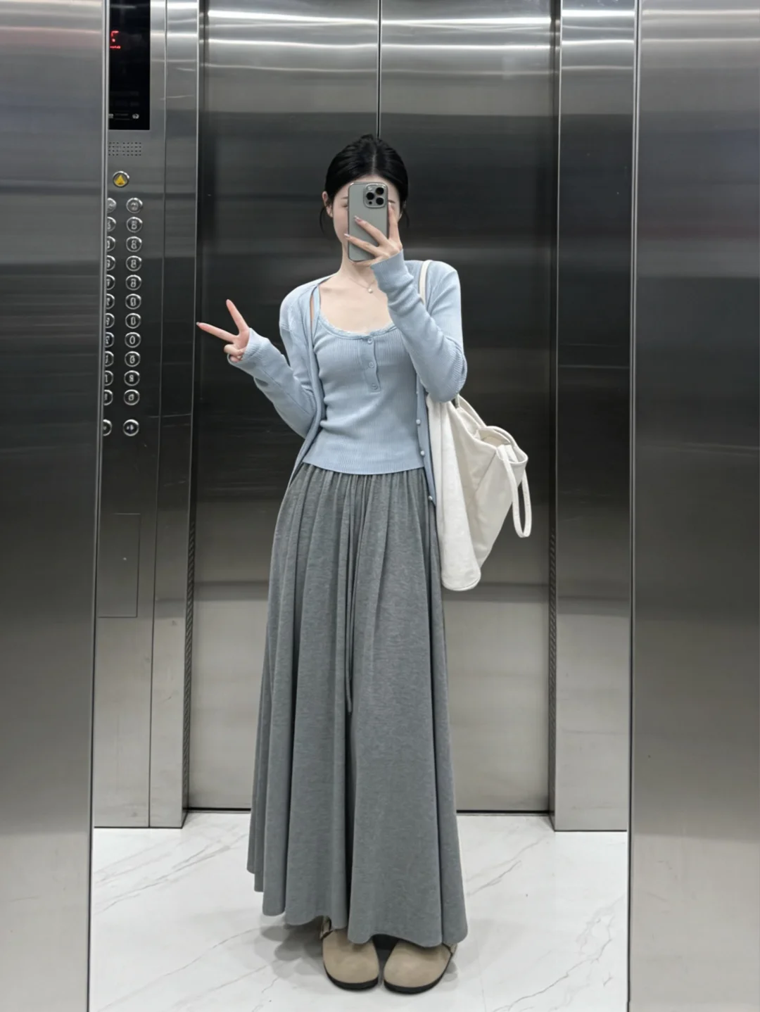 温柔穿搭风 纸片人穿搭 清冷感穿搭 慵懒穿搭 上班族穿搭 半身长裙 三件套 春季套装 ootd穿搭