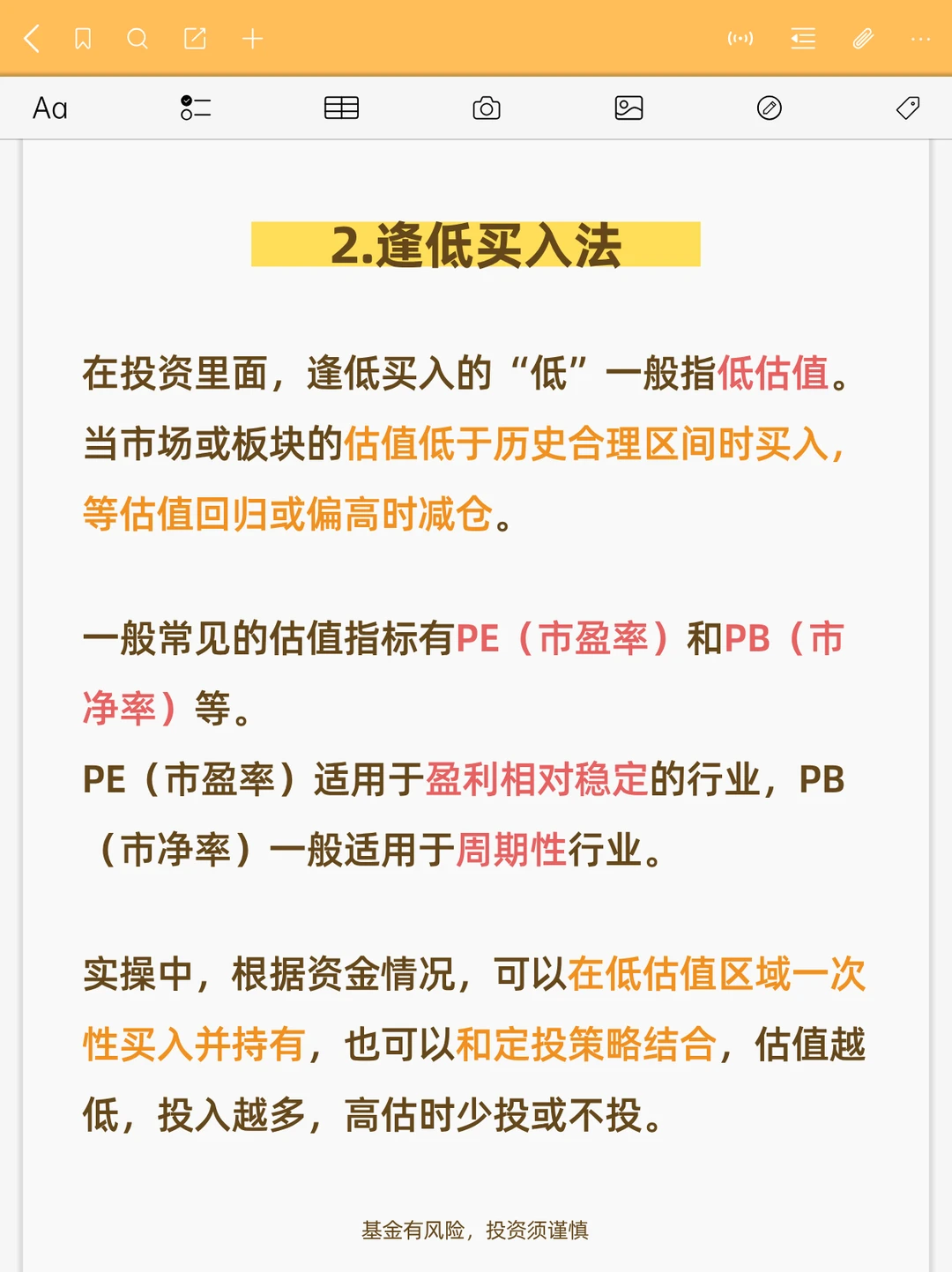 ‼但要注意:在投资里面,逢低买入的“低”一般指低估值