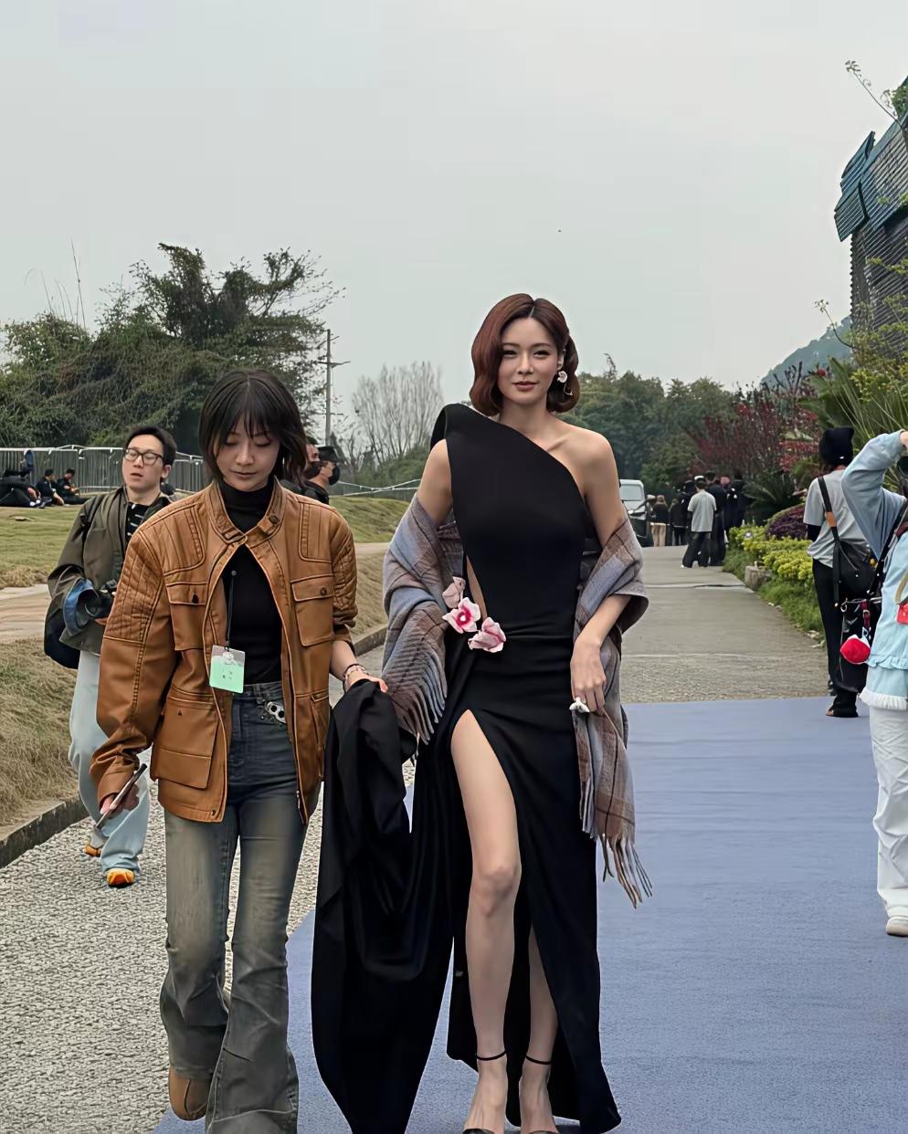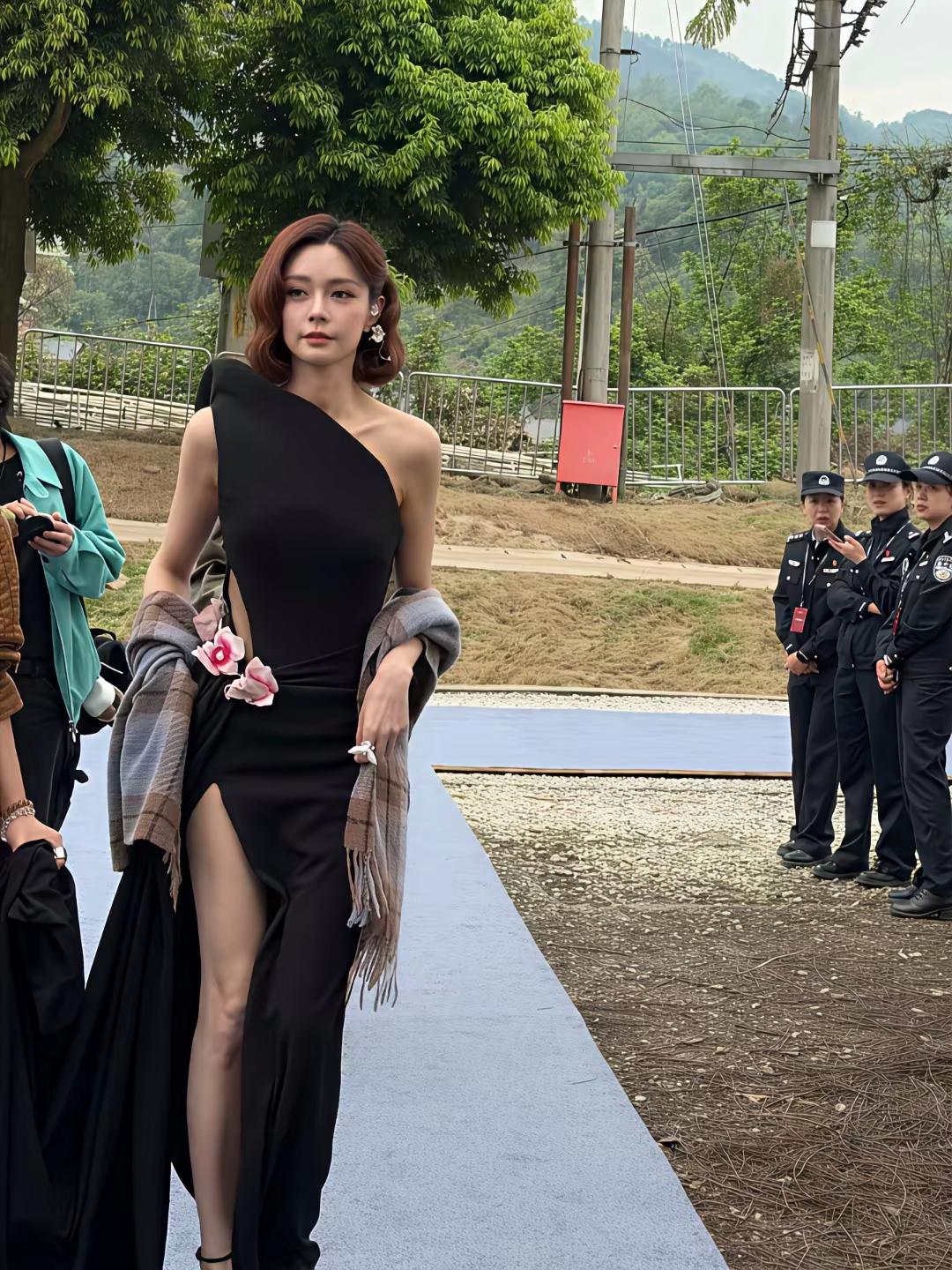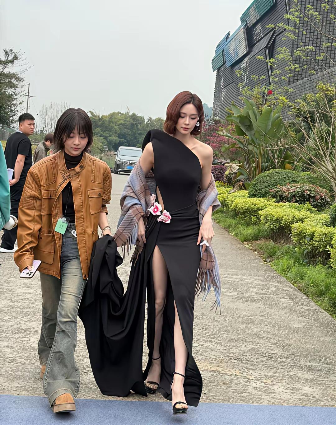 沈梦辰现身四川出席活动被,身穿黑色斜肩高开叉裙子,身材又高又瘦,完全没有一点肉感