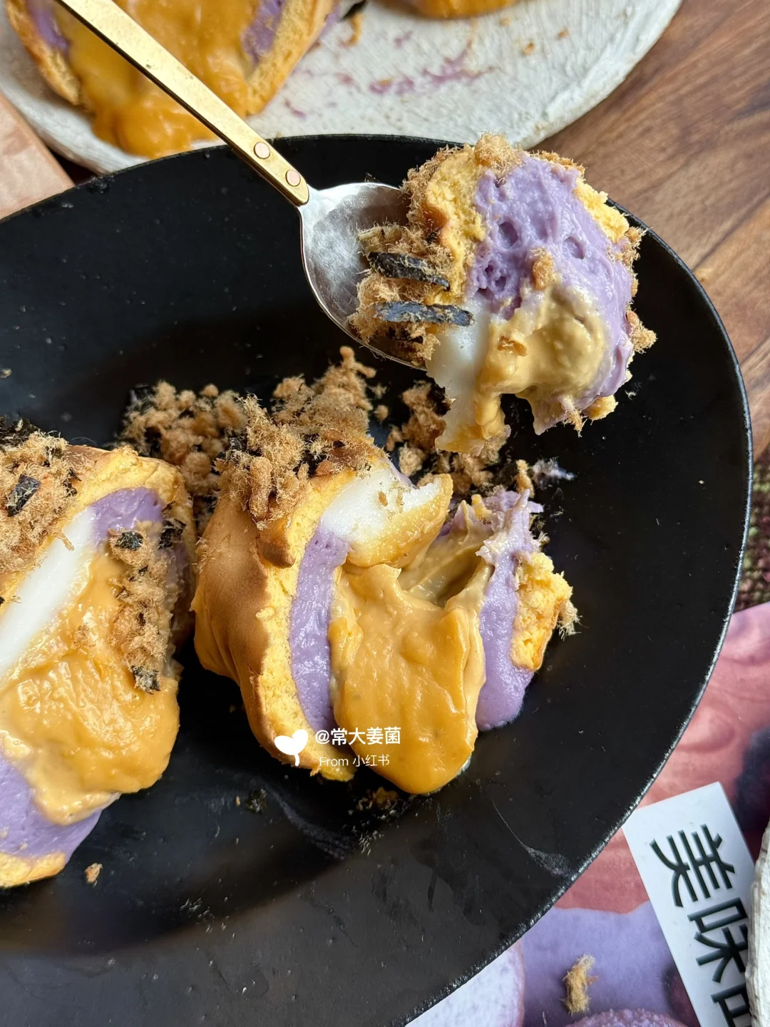 这只虎皮卷里有芋泥+蛋黄流沙+麻薯🥚🧀