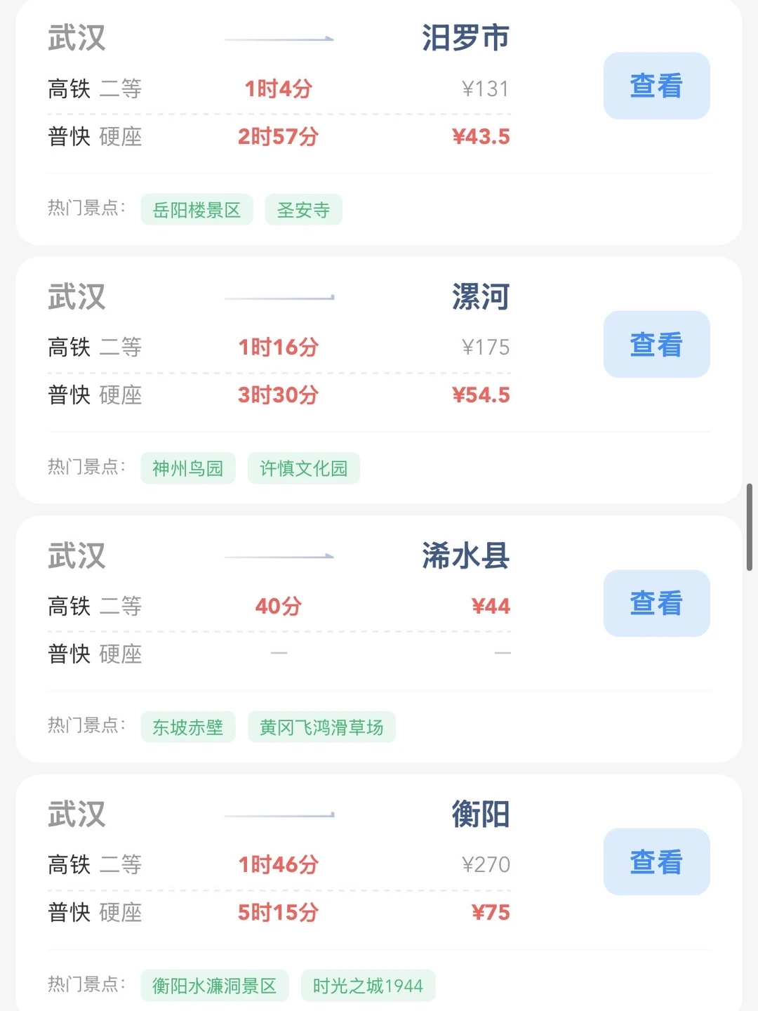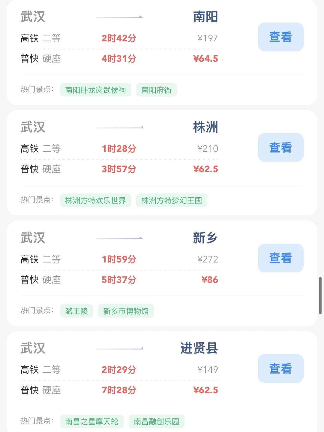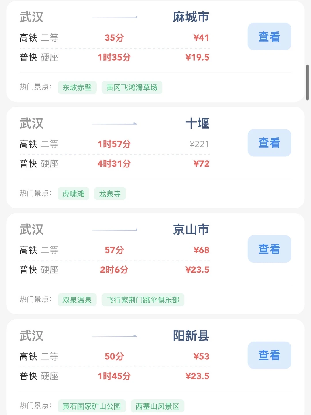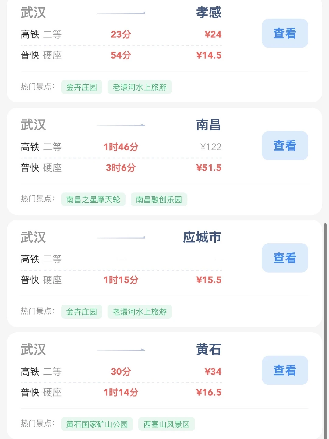 熬夜帮大家整理出了一份武汉出发一百块的火车票就能直达的旅游城市合集