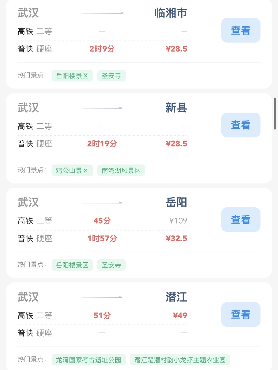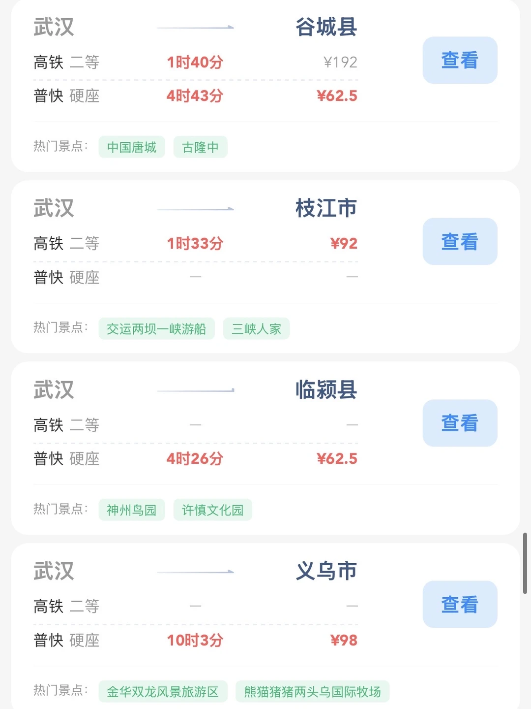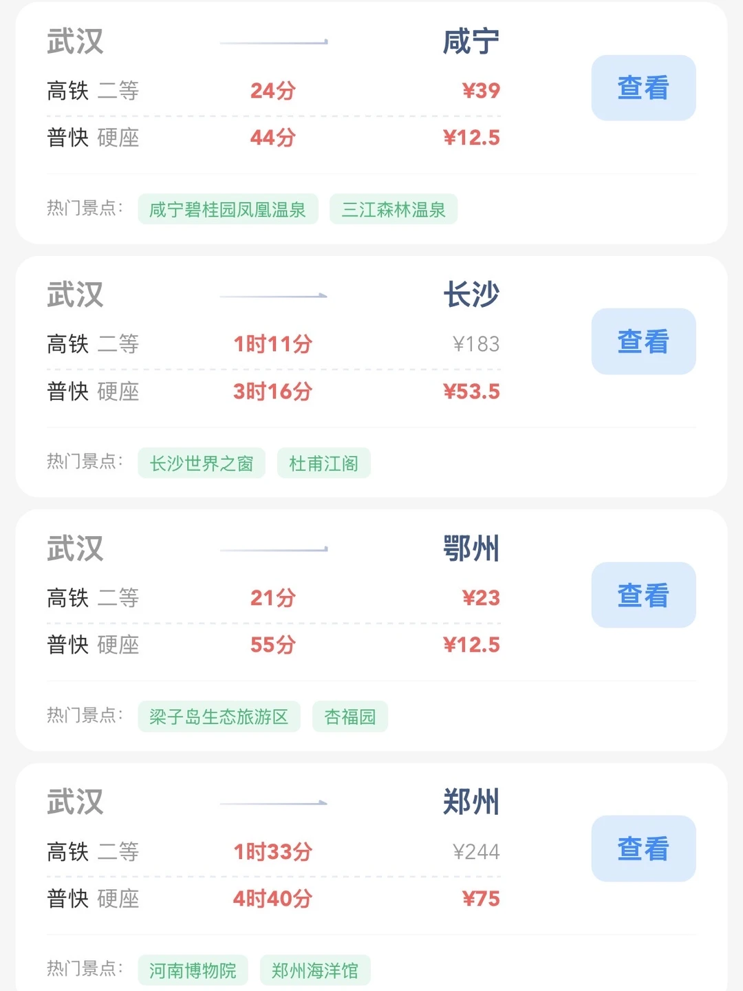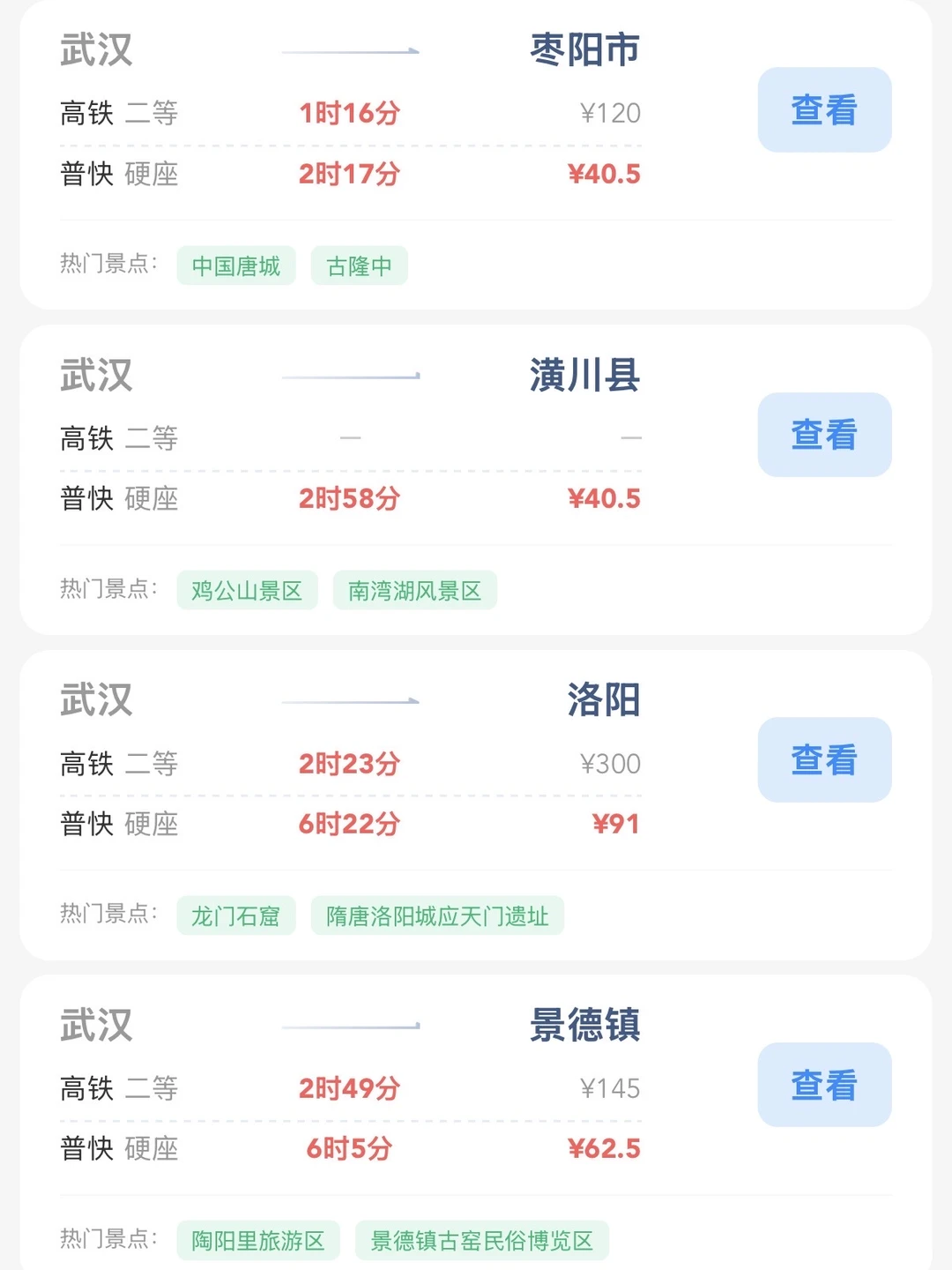 熬夜帮大家整理出了一份武汉出发一百块的火车票就能直达的旅游城市合集
