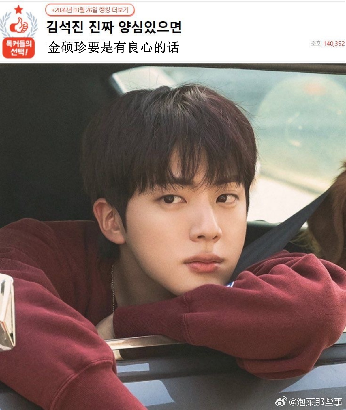 🔥韩网热帖评论翻译🔥金硕珍要是有良心的话...韩网原帖帖主称:金硕珍要是有良