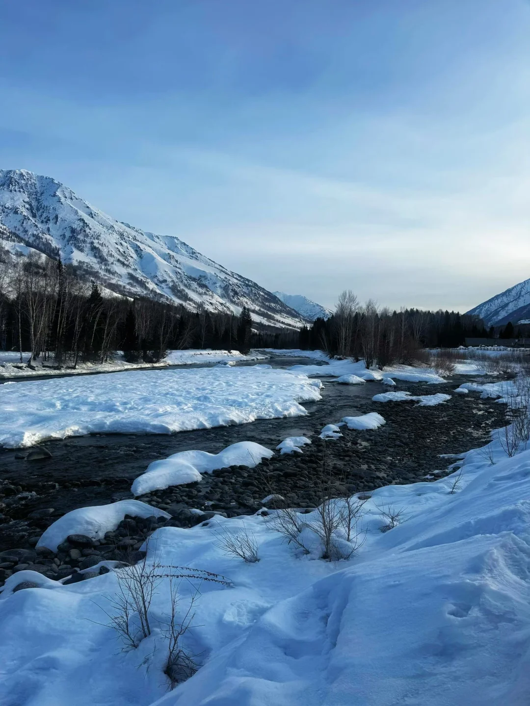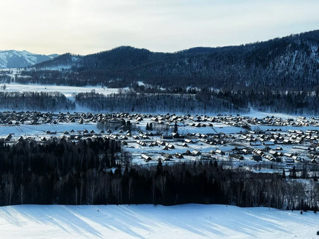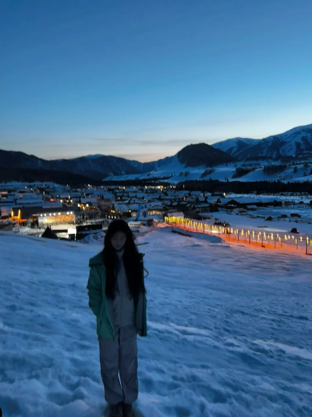 日落后的禾木才是真正的颜值巅峰! 深邃蓝调天幕+雪原木屋+暖黄灯火 氛围感直接拉满 每一帧都美到窒息~