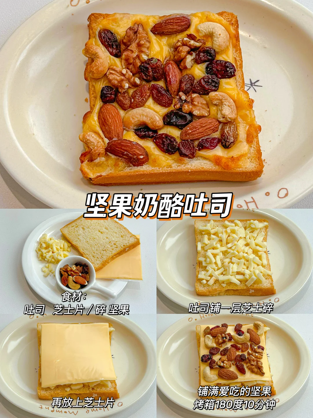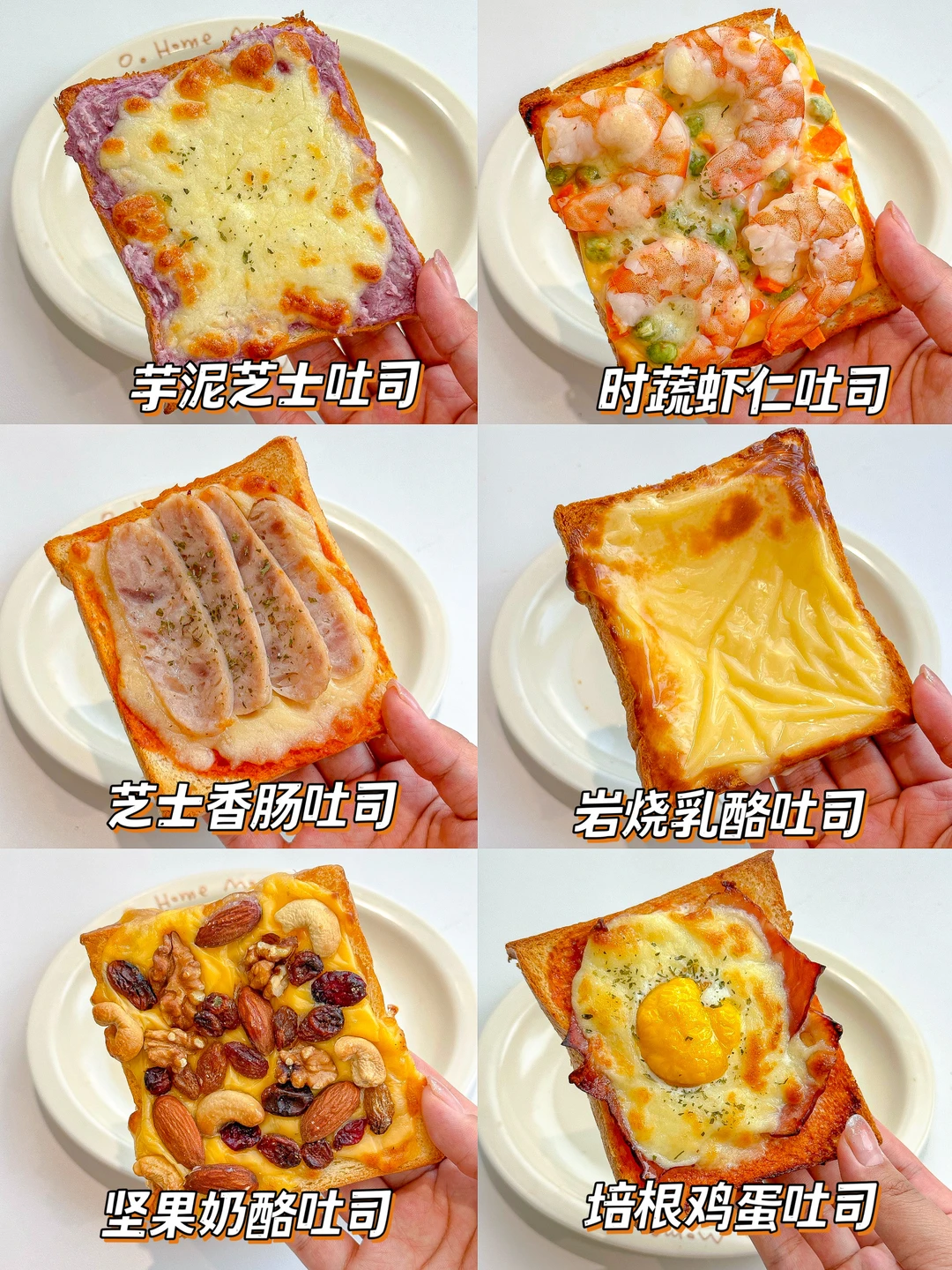 早起几分钟就能搞定的营养吐司🍞外酥里嫩,一口下去芝士拉丝,吃起来超级满足,满满的馅料,比外面买的好吃太多了😄早餐🥣搭配米糊🥛就是营养的一餐。做法也特简单,10分钟就搞定了~快收藏起来做下试试吧 🌟芋泥芝士吐司🍞 🌟时蔬虾仁吐司🍤 🌟芝士香肠吐司🥩 🌟岩烧乳酪吐司🧀️ 🌟坚果奶酪吐司🌰 🌟培根鸡蛋吐司🥓 🔍具体做法请参考图文 🔥空气炸锅/烤箱都可以做,具体温度时间可以根据食物状态上下调整