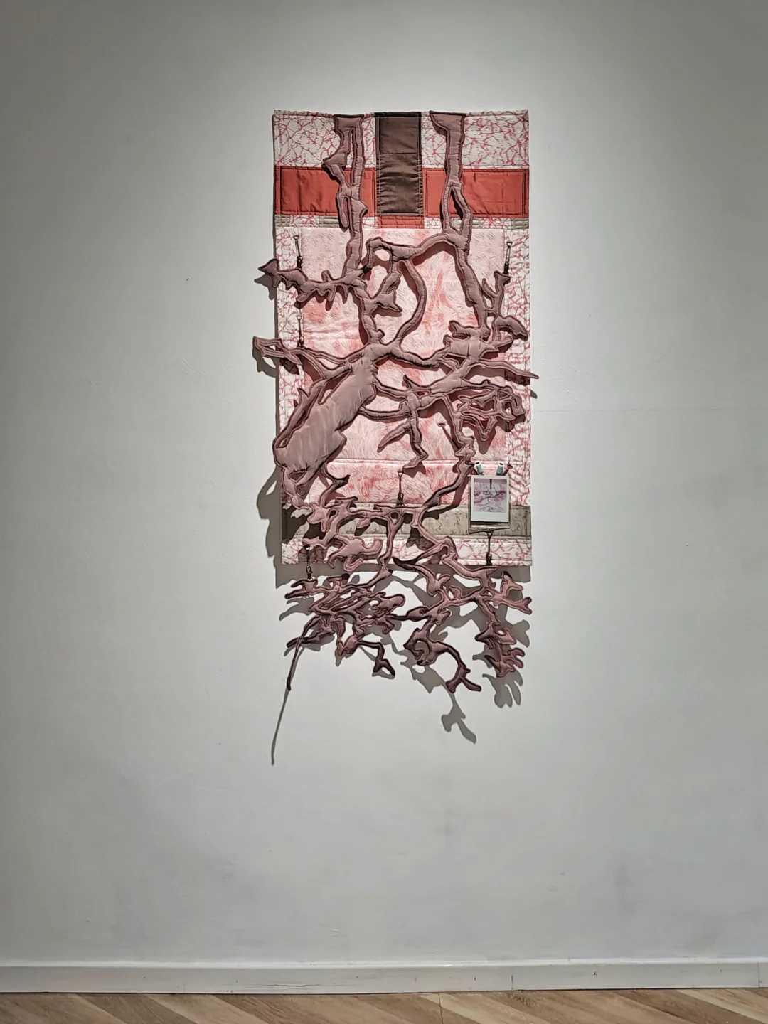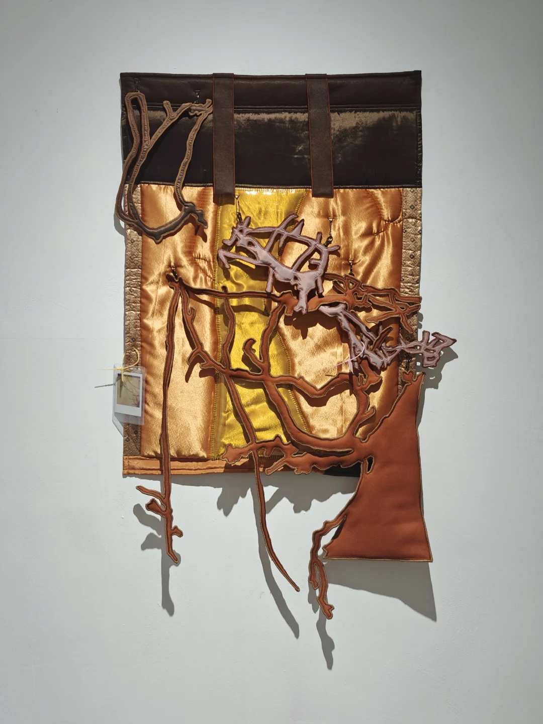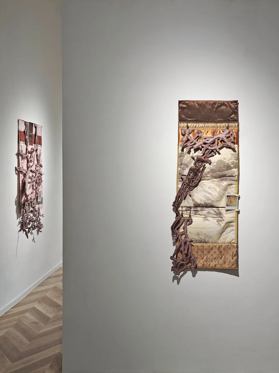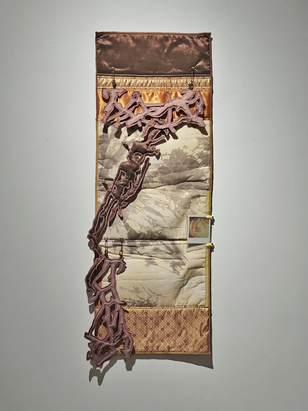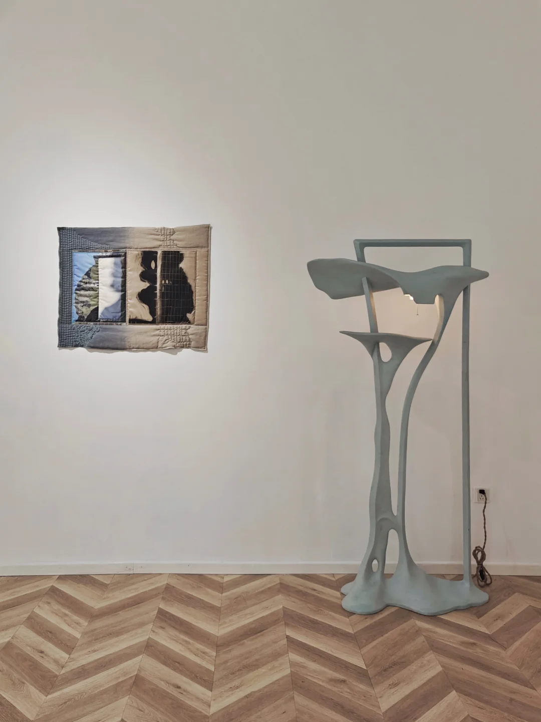 日本驻地经历让他从东亚视觉文化中取材,以手工缝纫联结影像与布料,用拼接打破数字与手工、东方传统与当代消费的边界,把转瞬即逝的城市瞬间固化为带有仪式感的软雕塑,探讨平行时间和多重现实的内核。