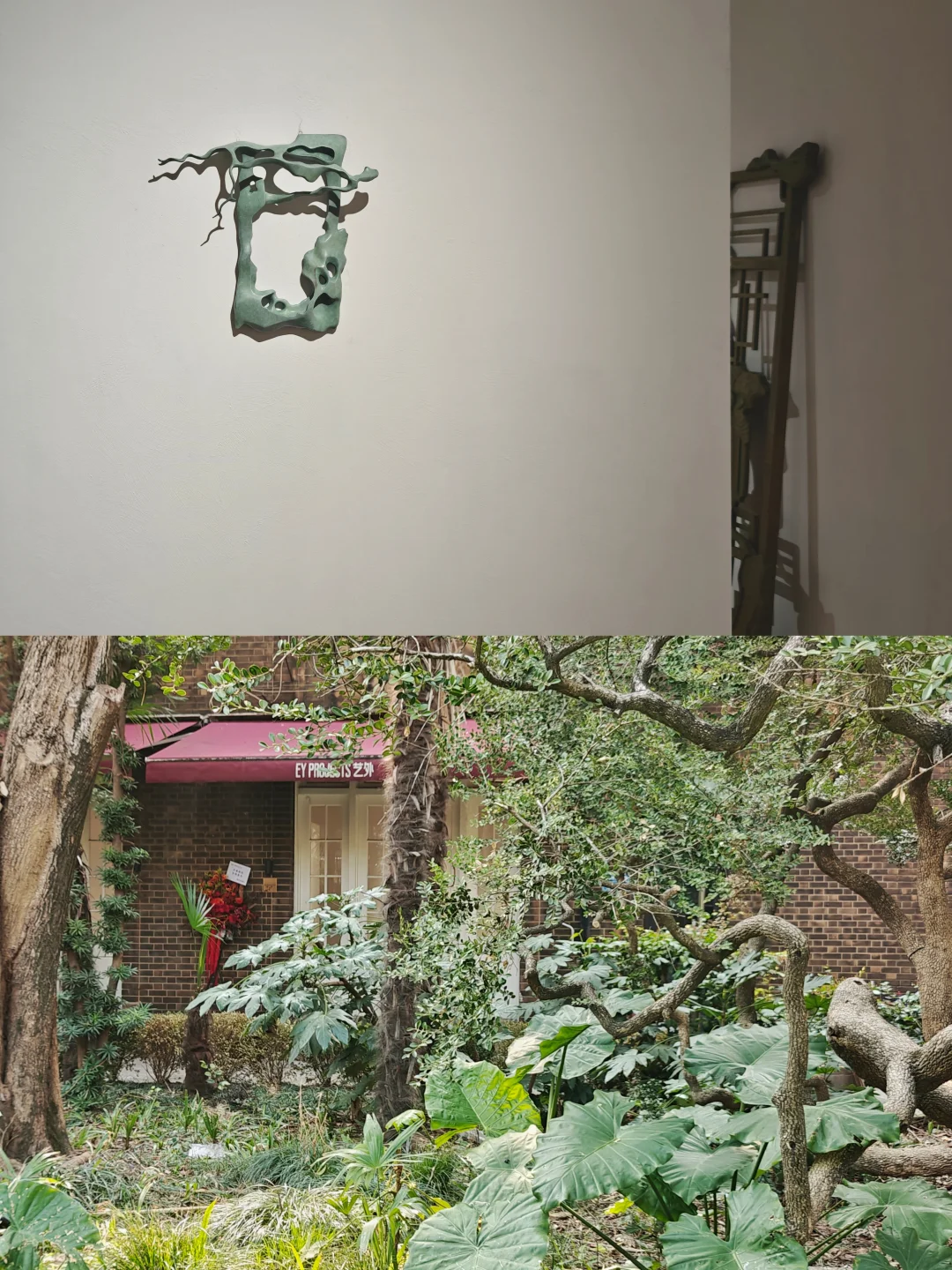 🏠去年就想解锁的一处画廊,终于在3月初去打卡了。严同春宅现在是解放日报的办公处(图15-17,前年开放过一小部分,春色填满的一面大窗户颇为出圈。这家画廊就开在它的西侧的独栋小楼中,隔着一个植被茂密的花园,隐藏在一片浓绿中,颇有点大隐于市感。