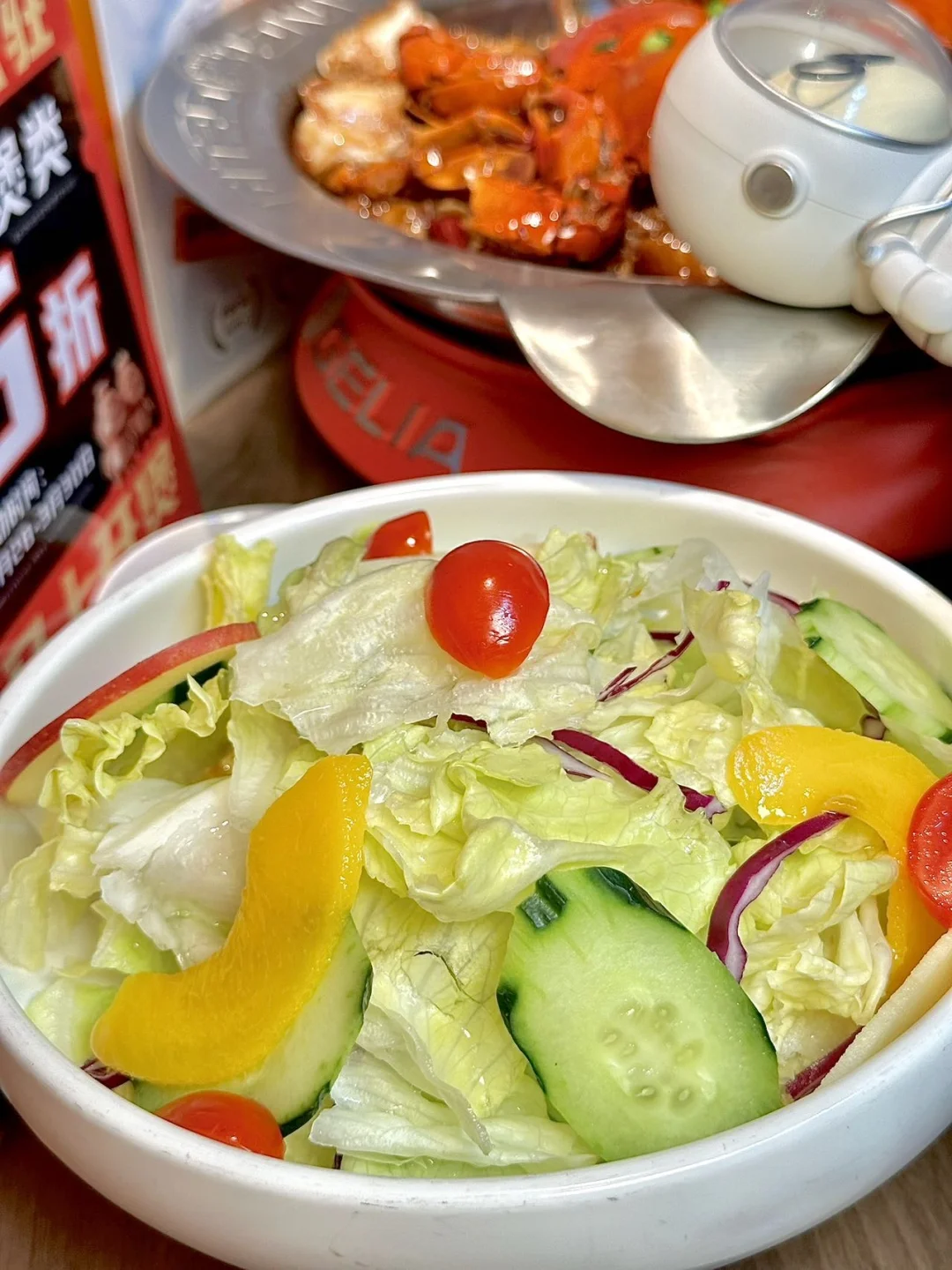 招牌的胖哥俩肉蟹煲必须安排!味道特别醇厚,螃蟹肉质饱满又细腻,那个酱汁浓郁入味,拌饭真的一绝。蔬菜沙拉很清爽,解腻刚好。