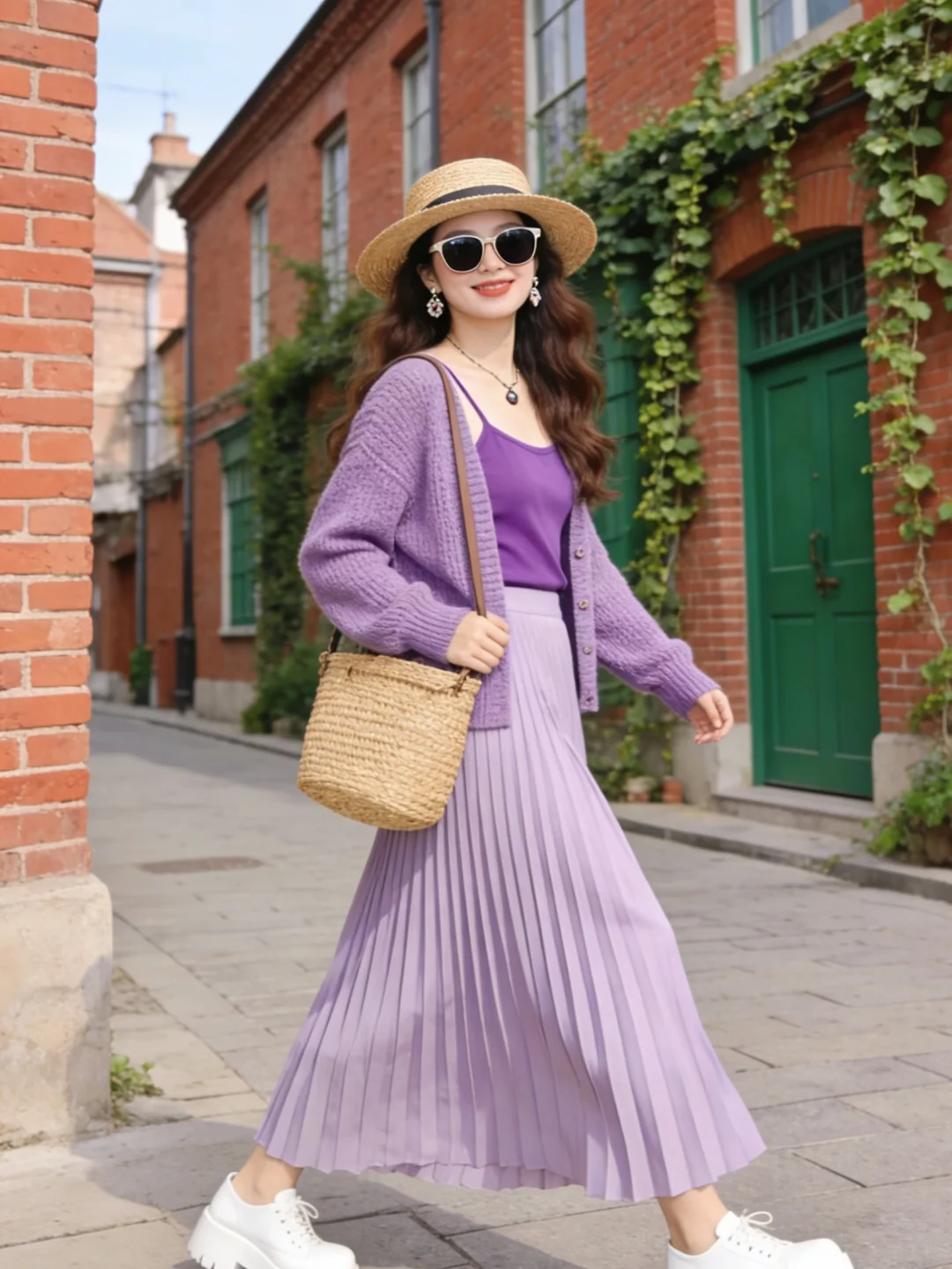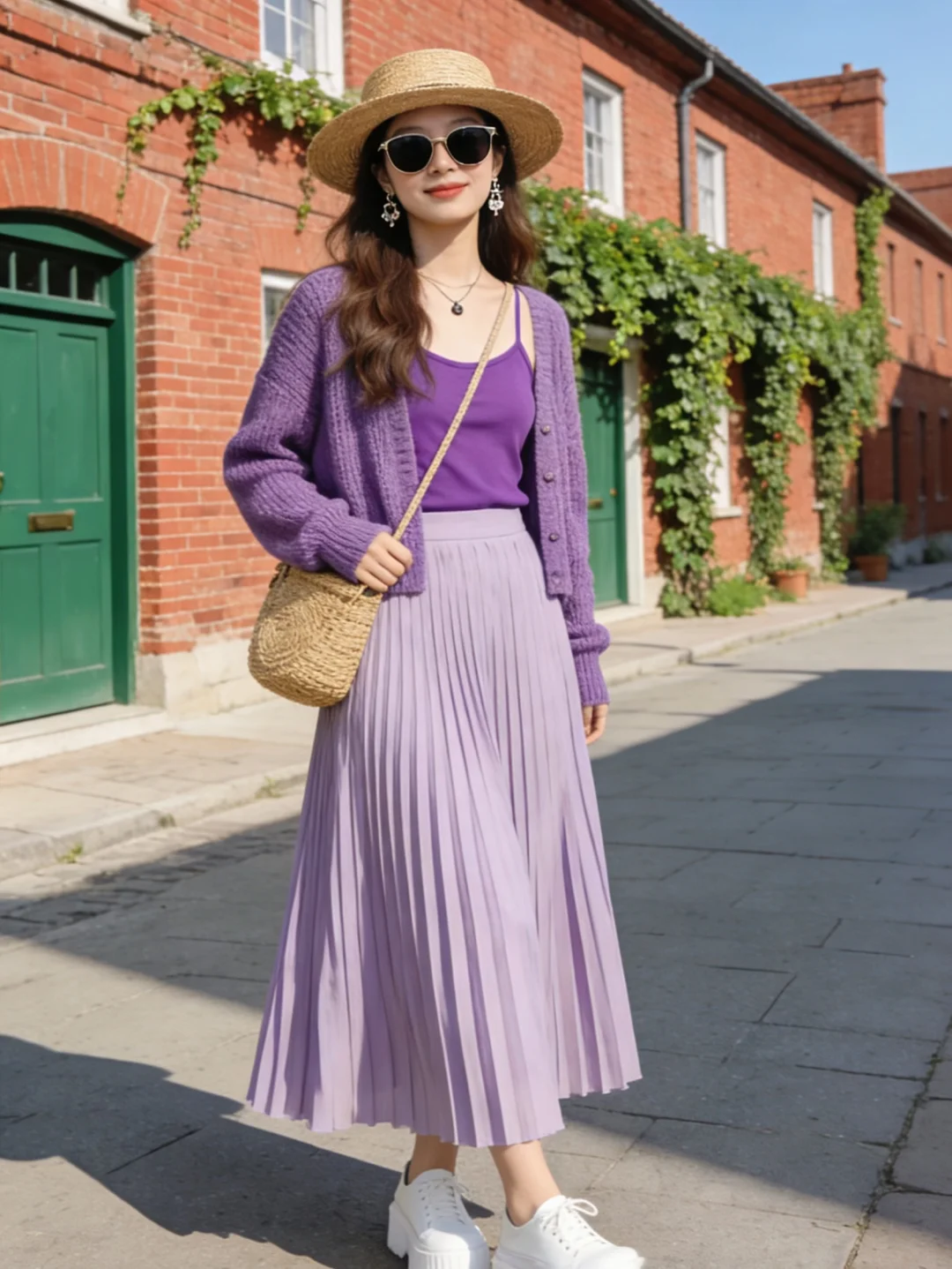 温柔穿搭风 薰衣草 浪漫的紫色 紫色的浪漫 开衫穿搭 半身裙 草帽 ootd穿搭