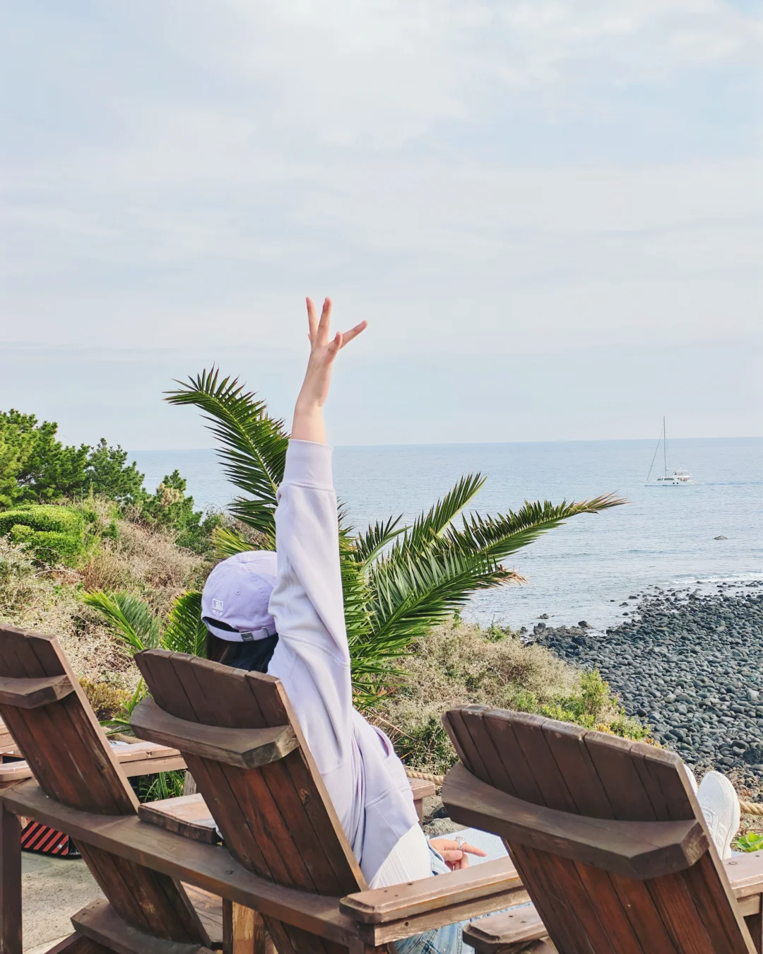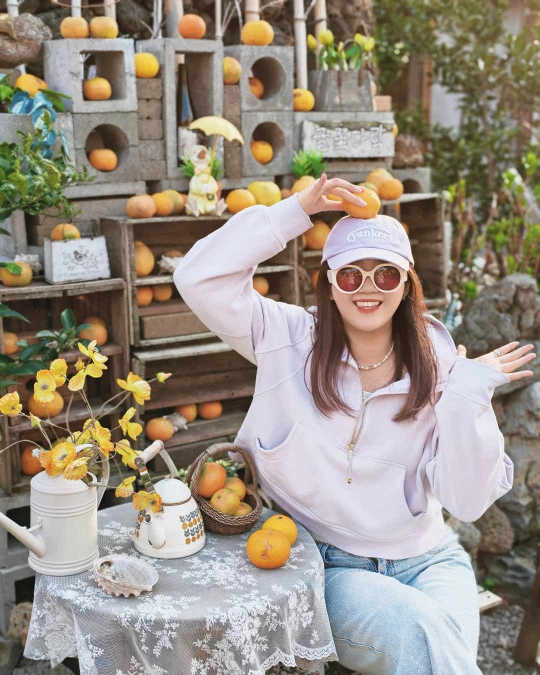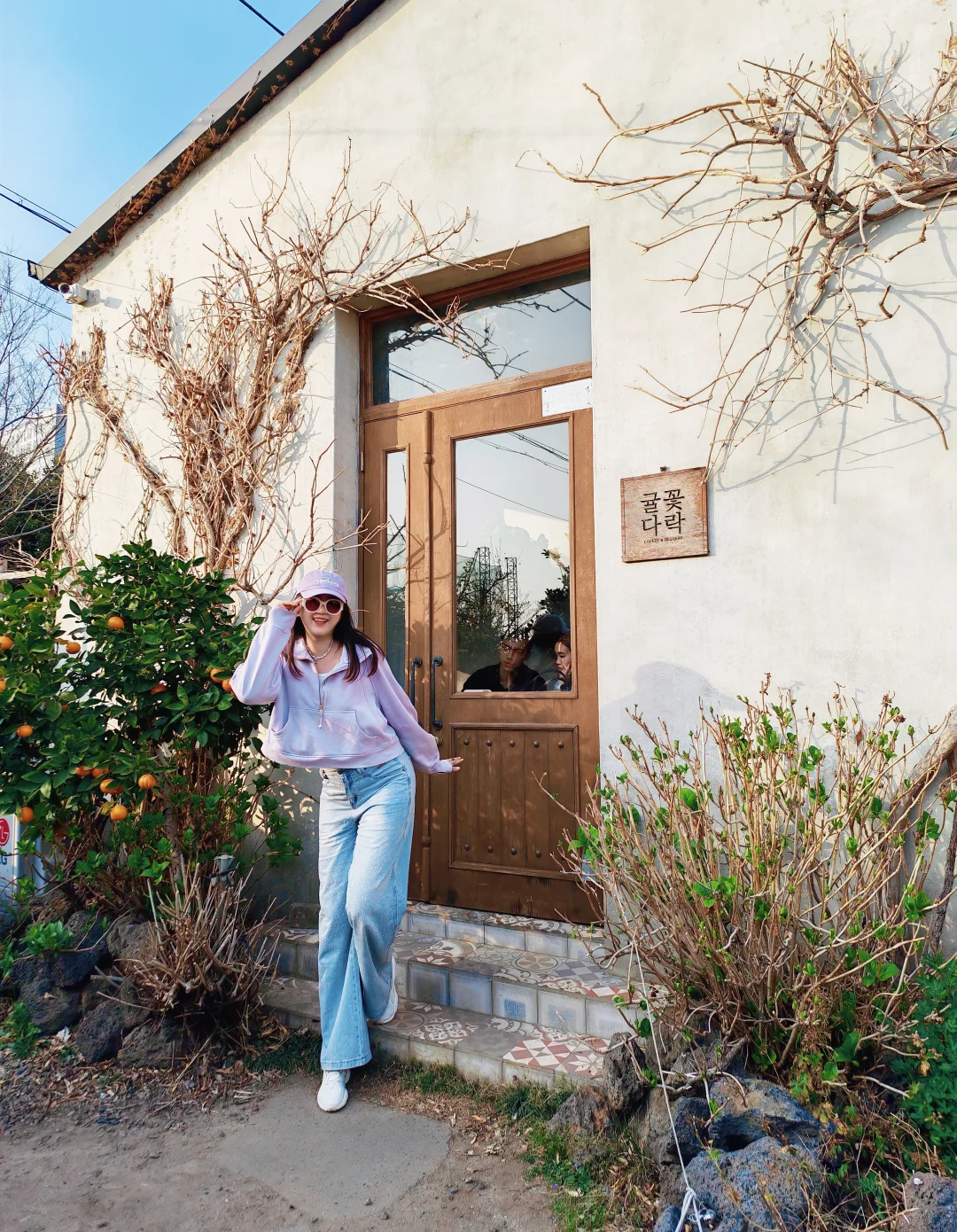 这里是济州柑橘文化的缩影。庭院里挂满金黄橘子;春夏则是一片翠绿。店内主打济州丑橘汁、橘子布丁和橘子拿铁。建议选在户外露台或玻璃房内,背景是汉拿山与柑橘田的交织,非常符合韩系“慢生活”的调性。在这里喝杯咖啡、拍拍人生四格照,享受约1小时的松弛