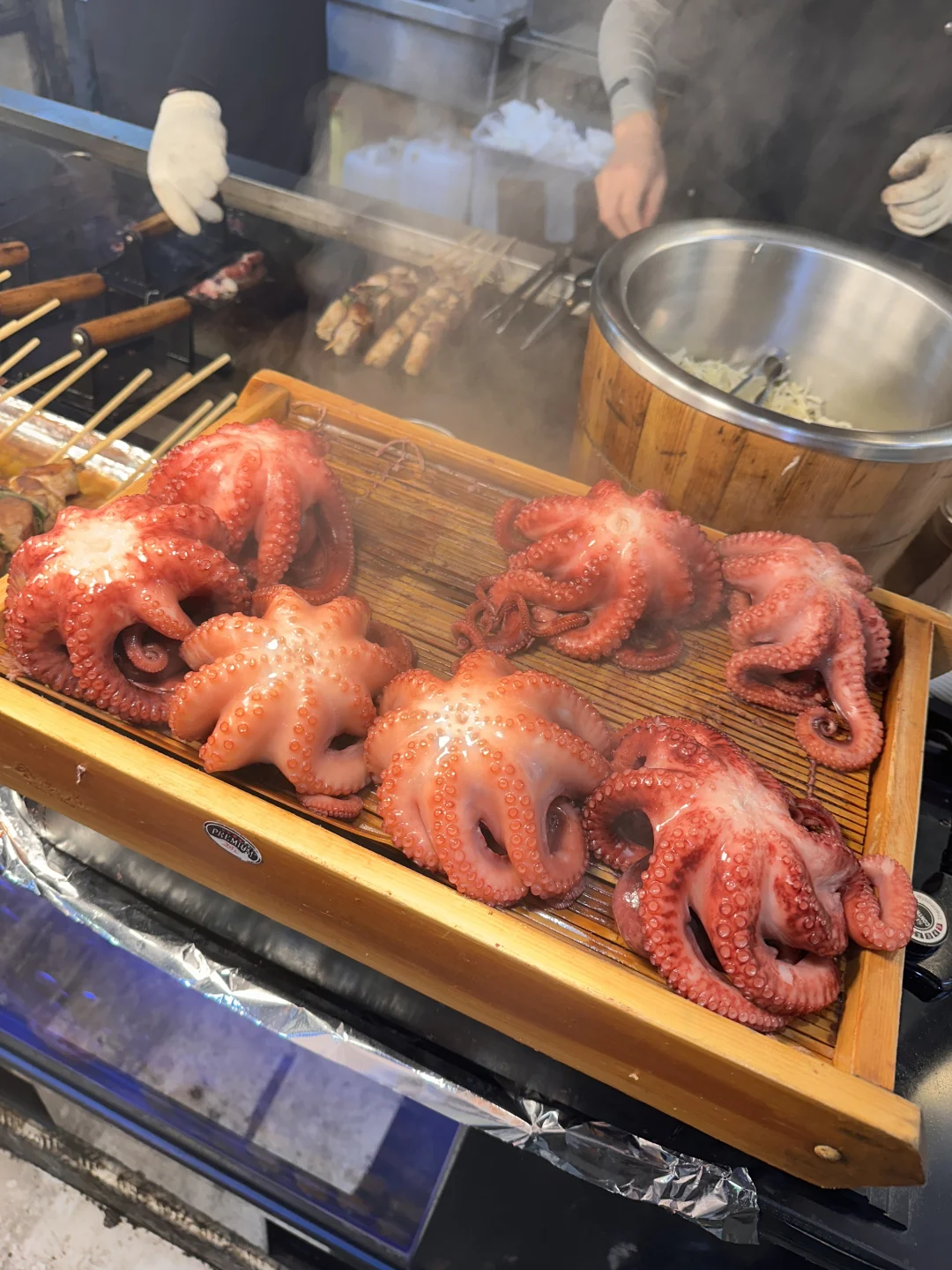 刺身拼盘:临近港口,这里的生鱼片非常新鲜,可以买一份坐在公共餐桌享用