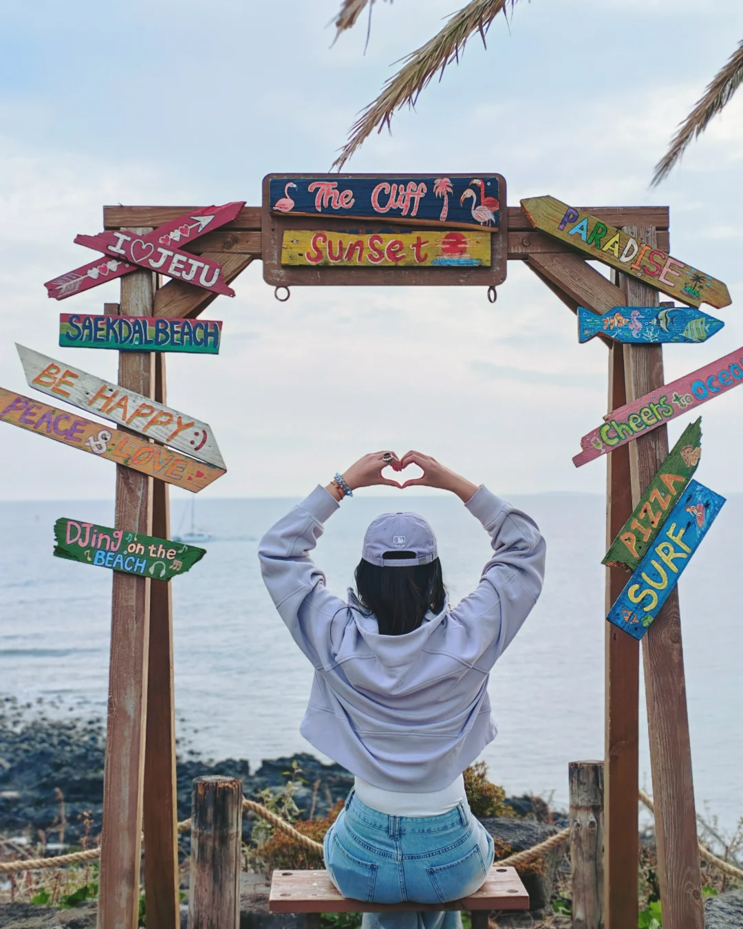 紧邻柱状节理带,这里的沙滩呈迷人的巧克力色,海浪较其他海滩更为澎湃,是冲浪爱好者的聚集地。推荐附近的餐厅下午茶,彩色装置很出片,视觉与味觉双重享受。饭后可在沙滩赤脚散步,感受济州清澈的海水