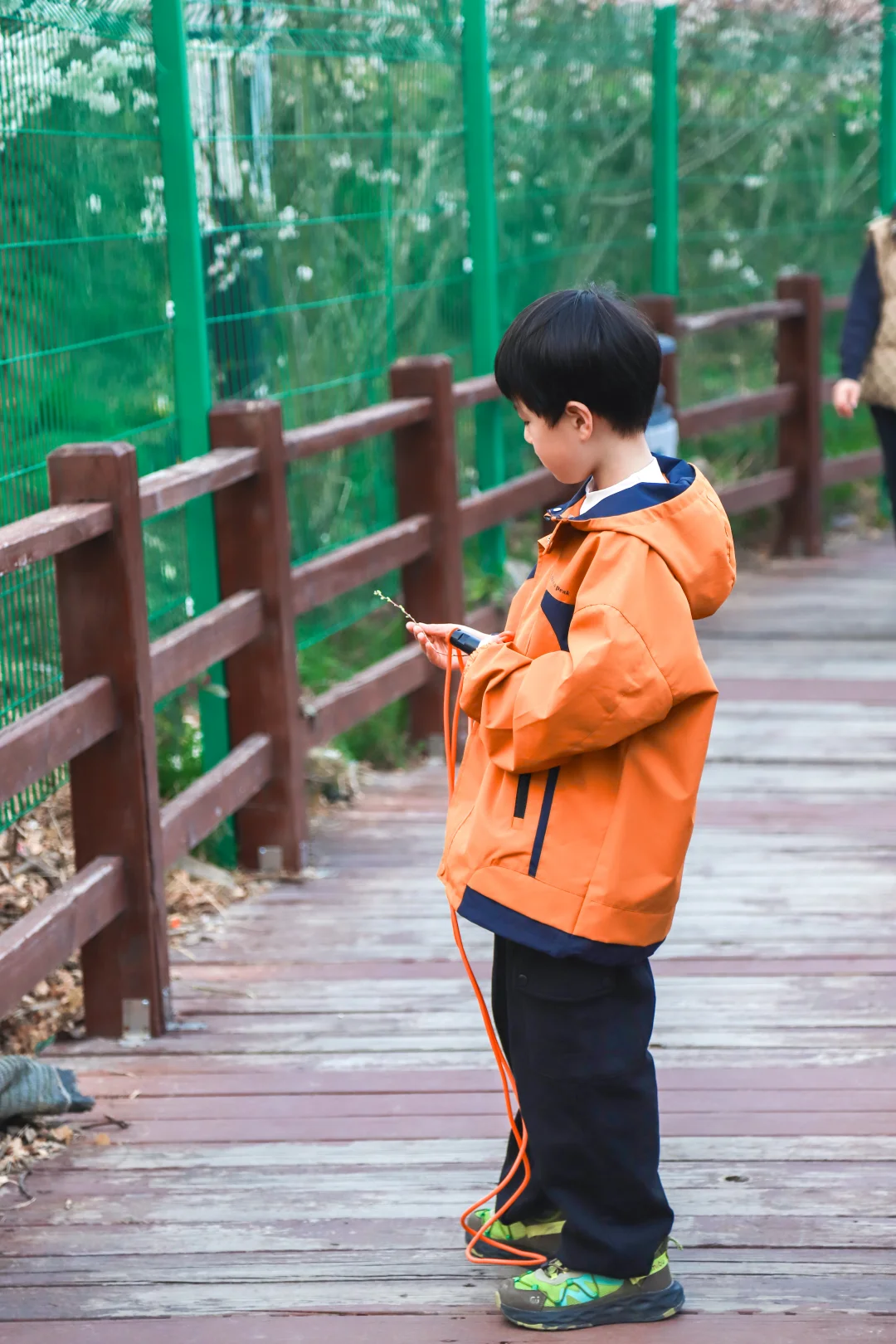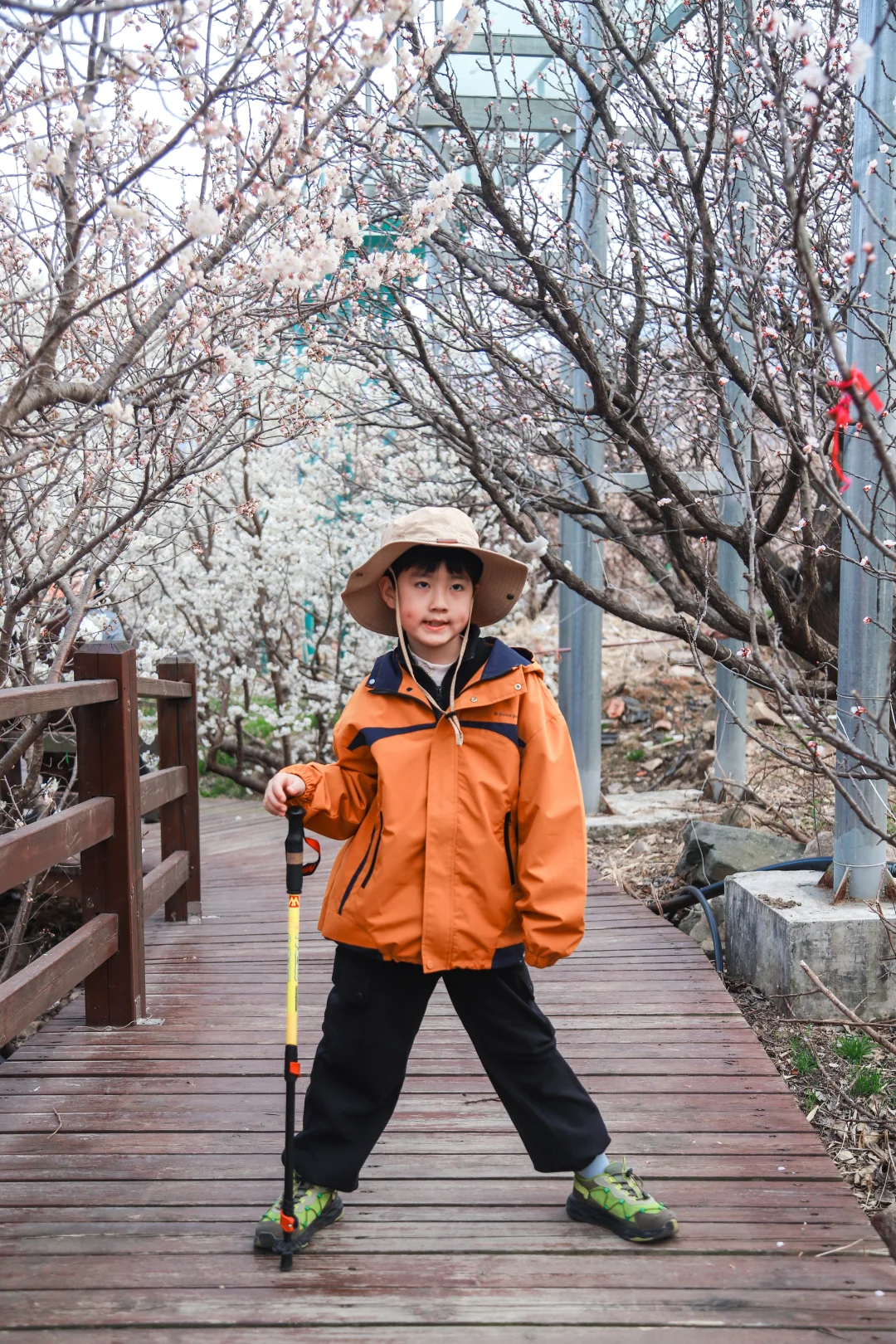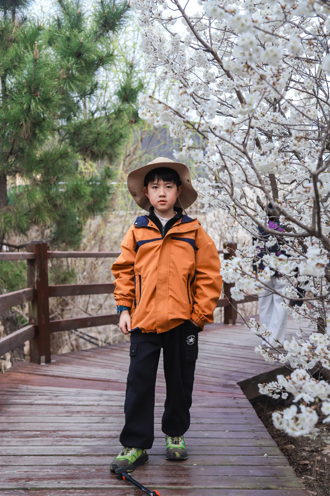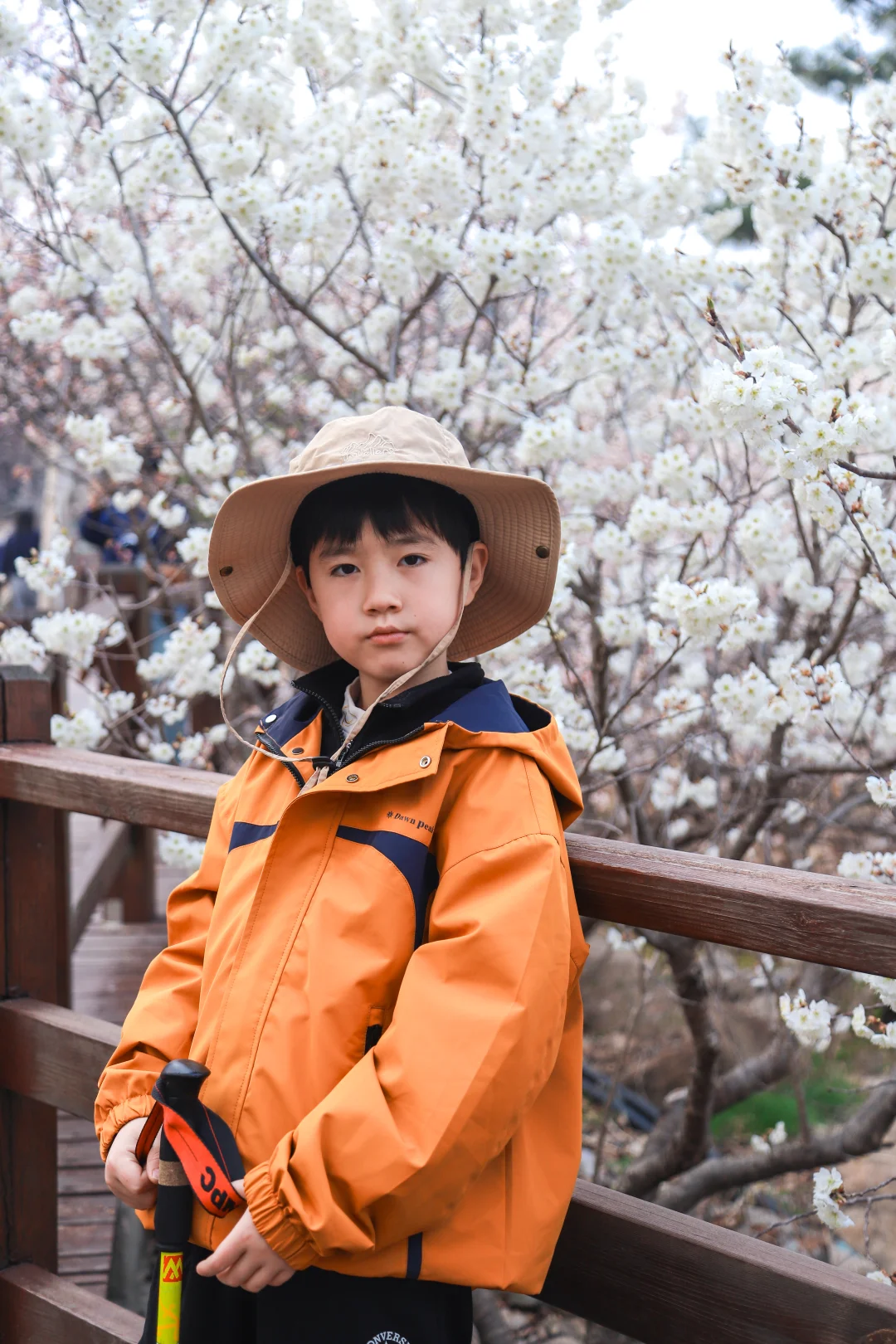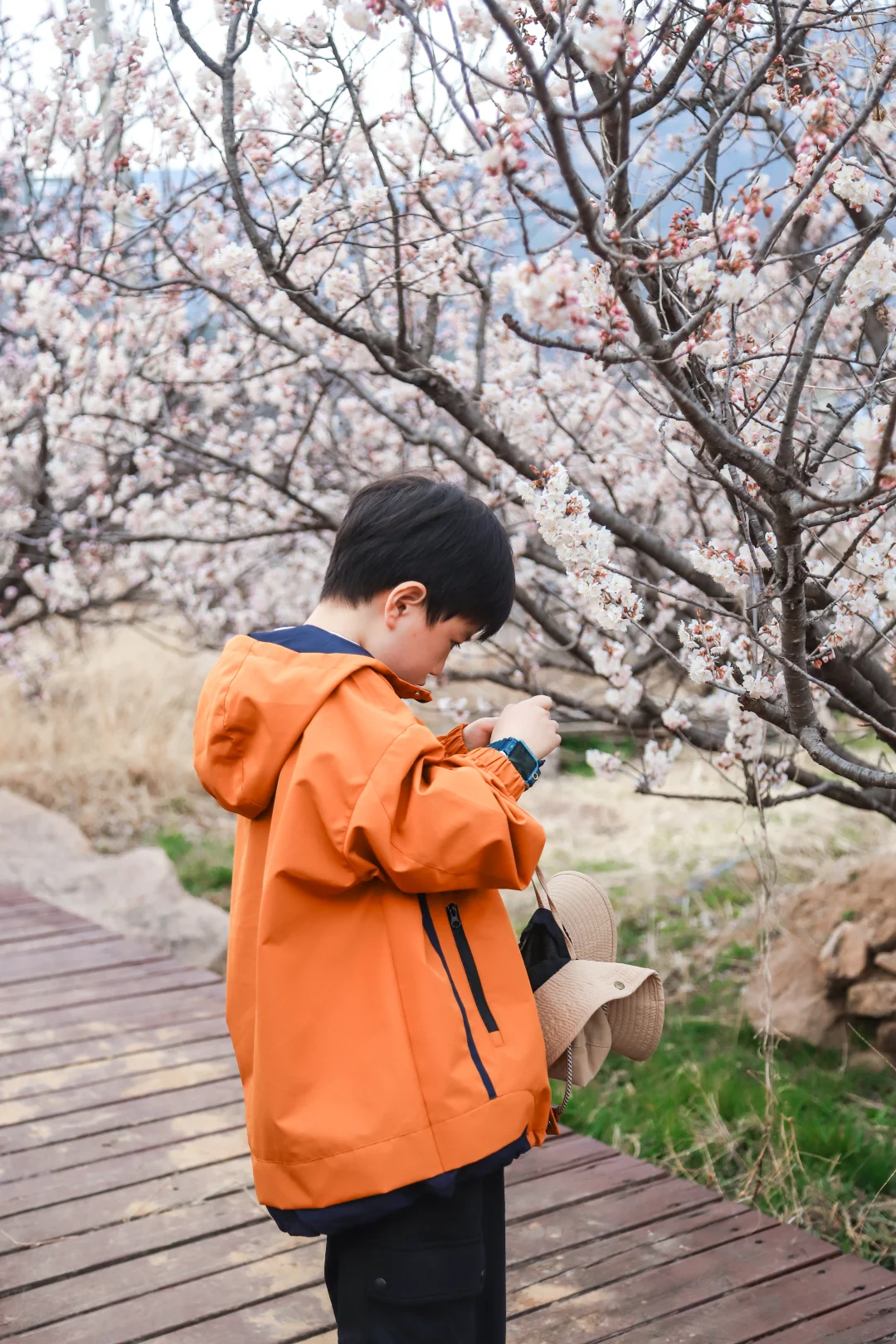 橙色的衣服和樱花一起撞出了不一样的感觉
