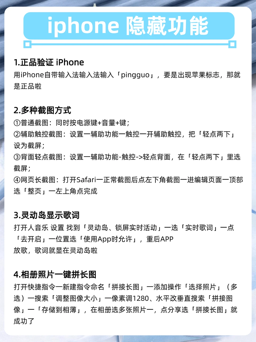 ❤️hello呀,兄弟们[赞R] 🌈今天给大家带来的是iPhone的隐藏功能[飞吻R] [向右R]喜欢的贝贝快快收藏码住啵,后续会持续为大家带来精彩内容[飞吻R]