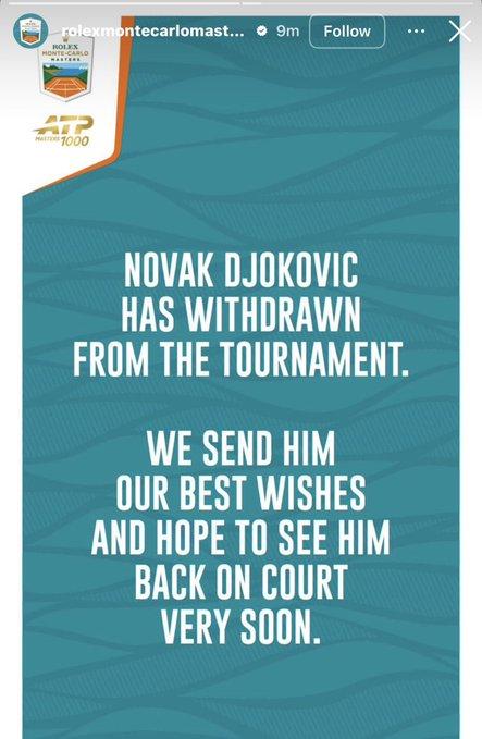 德约科维奇退出蒙特卡洛大师赛。 意料之外,情理之中。 所谓的3圈金大师从来不是诺瓦克的追求。 恢复健康是第一位的。 也许法网见? 猜想,马德里复出可能性大。