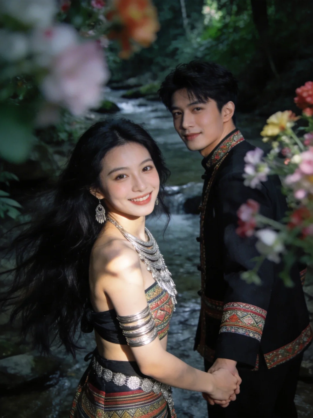 林间的风漫过溪面🌿 银饰在阳光下晃出粼粼的光 发丝被风揉得肆意,却藏不住眼底的软意 民族美学 小众民族风 少数民族 民族风写真 情侣写真 ai写真 [仙女R]欢迎交作业,主页还有更多自制ai指令。 [仙女R]创作不易,转载请注明出处。 [仙女R]谢谢宝子们的喜爱,❤️⭐➕关注不迷路。