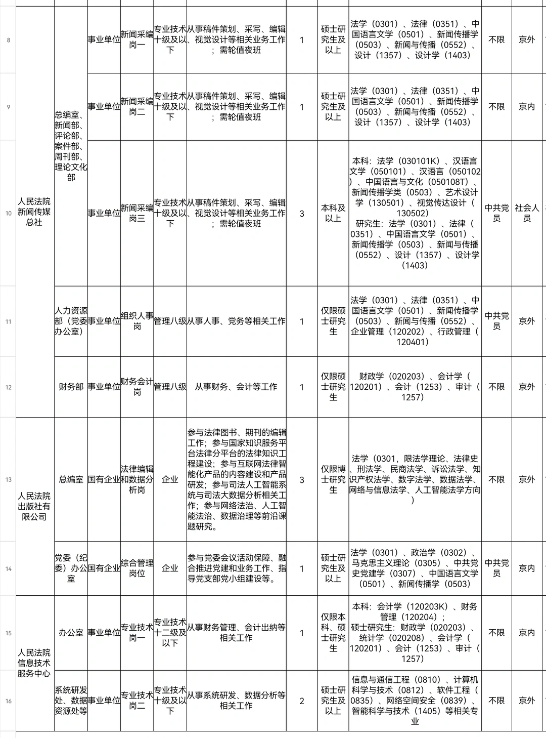 ✅根据工作需要,按照《事业单位人事管理条例》和事业单位公开招聘有关政策规定,最高人民法院直属单位(国家法官学院、中国应用法学研究所、人民法院新闻传媒总社、人民法院出版社有限公司、人民法院信息技术服务中心)2026年度公开招聘20名工作人员。