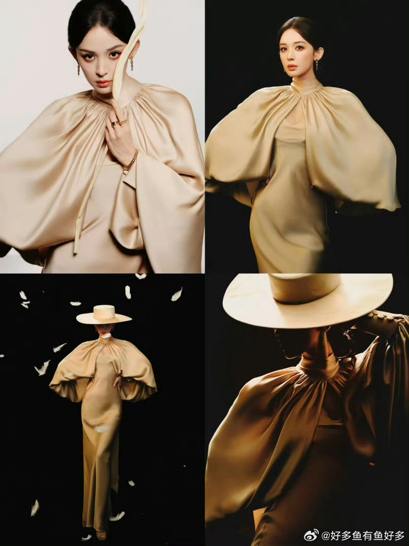 娜扎老电影女主角既视感娜扎旧画报风名伶 香槟色缎面裙配复古礼帽,娜扎像从老电影里走出来的!宽檐帽遮眉眼,每一帧都是旧画报名伶,矜贵又疏离✨
