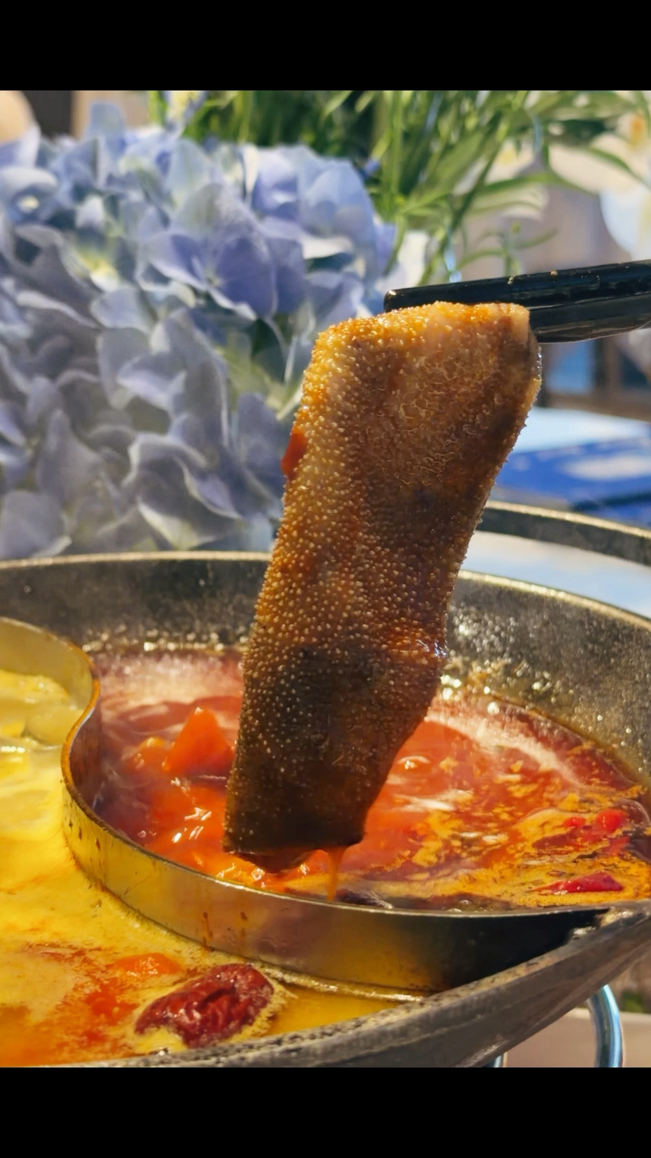 热辣的火锅搭子,除了现扯的鹅肠、毛肚还可以是新鲜的大翘壳、松叶蟹、六头南日鲍🍻再配一杯冰过的梅见青梅酒🧊佐餐是旁边小伙伴的八卦新闻又是愉快的晚上🌃 我的美食日记好好吃饭 重庆·解放碑威斯汀酒店锦肴轩特色餐厅