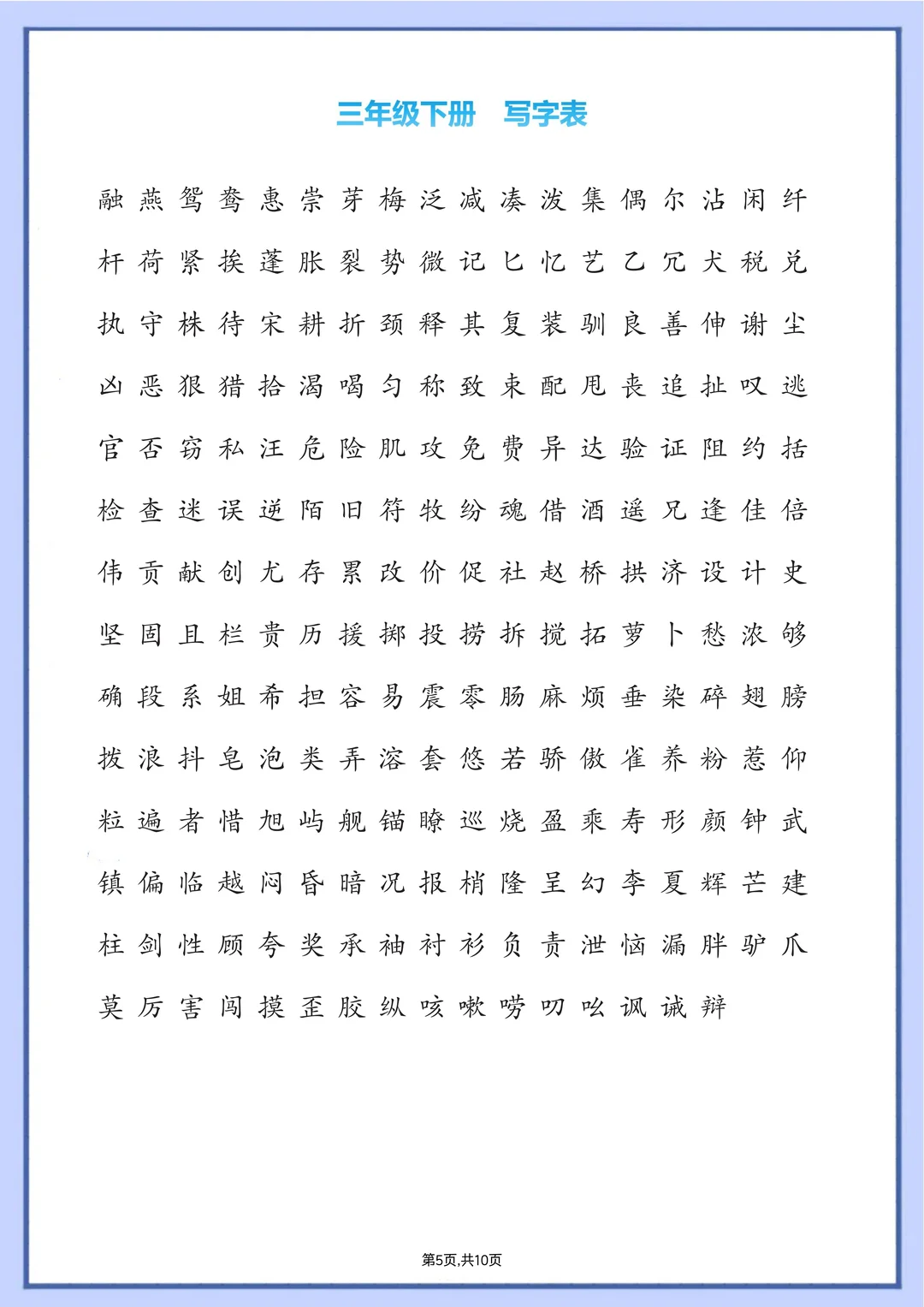 还在逐课抄写字表?太费妈! 这份汇总直接整合 1-6 年级课本后必写一类字 ✅ 按年级学期划分,超清晰 ✅ 告别零散整理,家长辅导超省心 低年级娃练字闭眼入,语文基础稳了💪 评论区置顶店铺可获取完整版。