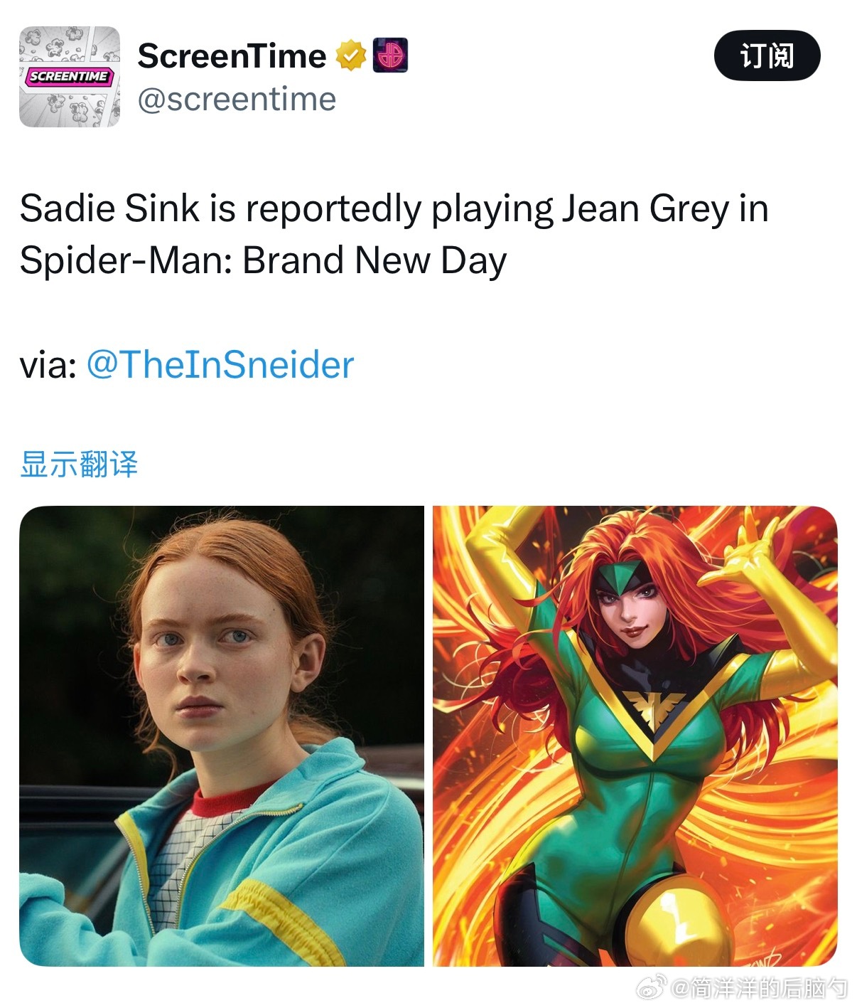 萨迪·辛克真的要在《蜘蛛侠:崭新之日》里出演凤凰女琴·葛蕾了,超合适!