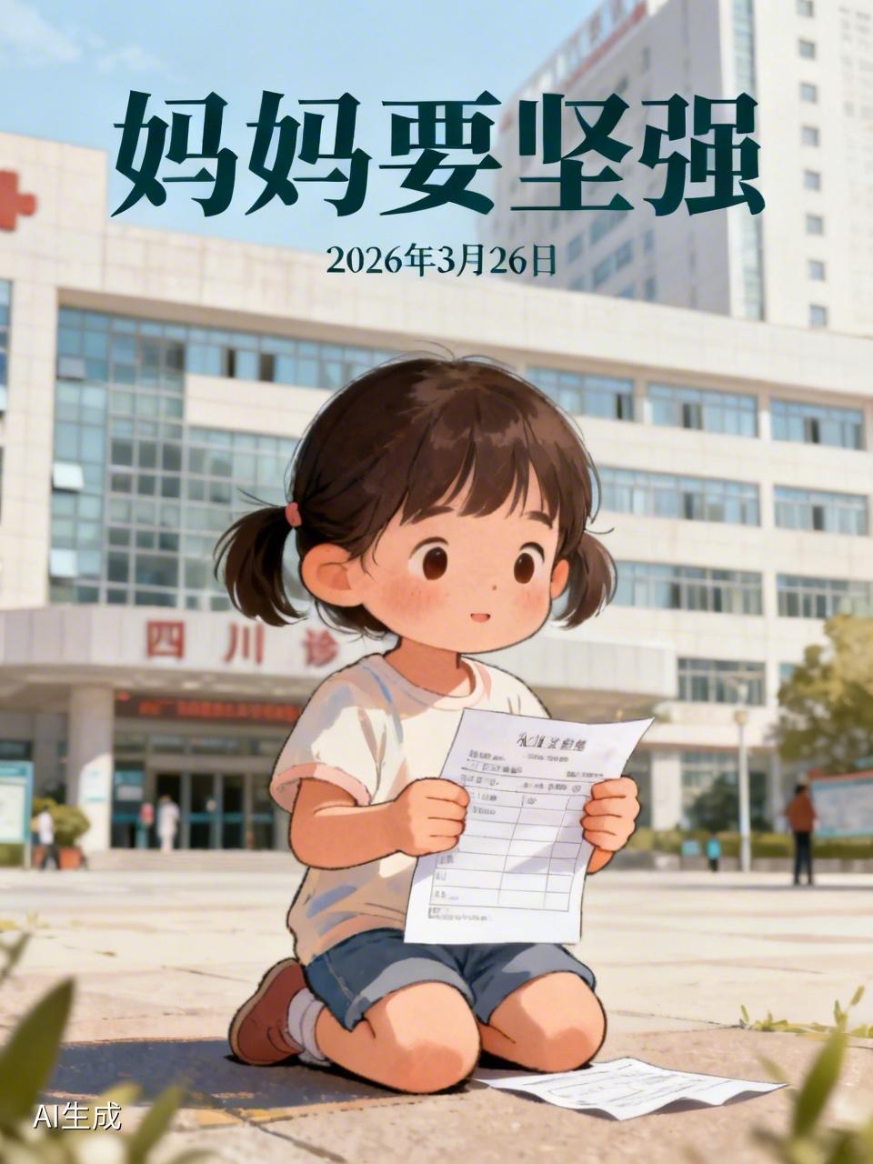 “妈妈要坚强!”四川医院外,4岁女孩跪地呼喊,背后故事让无数人泪目! 2026年3月26日,四川某医院的急诊室内,一场生死抢救正在紧张进行。年轻的母亲因突发大出血,血量已达40%,生命危在旦夕。门外,一个瘦小的身影跪在冰冷的地板上,双手紧紧攥着一张化验单,稚嫩的声音却异常坚定:“妈妈要坚强,不要哭!妈妈是最棒的!” 这位年仅4岁的女孩,眼中带着泪光,却没有一丝退缩。她的呼喊声穿透了厚重的诊室门,像一股无形的力量,传递给了母亲,也震撼了在场的每一个人。她没有复杂的语言,只有简单而真挚的爱——那是孩子对母亲最纯粹的守护。 这一幕,被医院的工作人员默默记录,也被后来赶来的媒体传播开来。女孩的坚持和勇气,让无数网友为之动容,纷纷留言:“这份爱,太纯粹了!”“小小年纪,却撑起了整个世界!”“希望妈妈能听到这份力量,早日康复!” 令人欣慰的是,经过紧急手术,女孩的母亲成功脱离生命危险,病情逐渐稳定。这个好消息像一束光,照亮了无数关注者的心。那句“妈妈要坚强”,不仅是孩子对母亲的鼓励,更像是她对自己的一种坚定信念。她用行动诠释了什么叫做“母女连心”,什么叫做“爱能创造奇迹”。 这件事背后,映射出的是人性中最温暖的部分:在最无助的时刻,亲情成为最坚强的支撑。孩子的纯真和坚韧,提醒我们每个人,无论遭遇多大困难,只要心中有爱,就有希望。那份牵挂和守护,是生命中最珍贵的力量。 我们也要从这件事中学到:健康和陪伴,是对家人最好的守护。无论生活多忙碌,都别忘了多关心身边的亲人,珍惜每一个平凡的日子。因为,有人在等你回家,有人在为你祈祷。 愿所有的母亲都能健康平安,愿所有的孩子都能拥有一个温暖的家。也愿这份来自小女孩的勇气和爱,激励更多人,在风雨中不放弃,坚强前行。 当你看到这篇文章时,不妨停下脚步,给身边的亲人一个拥抱,告诉他们:“我爱你,也希望你坚强。”因为,爱,是我们最强大的力量。 你有没有被这个小女孩的故事感动?欢迎在评论区分享你的感受,和更多人一起传递这份温暖与希望!好孩子怎么应对社会的伤害? 内向的人能做什么工作