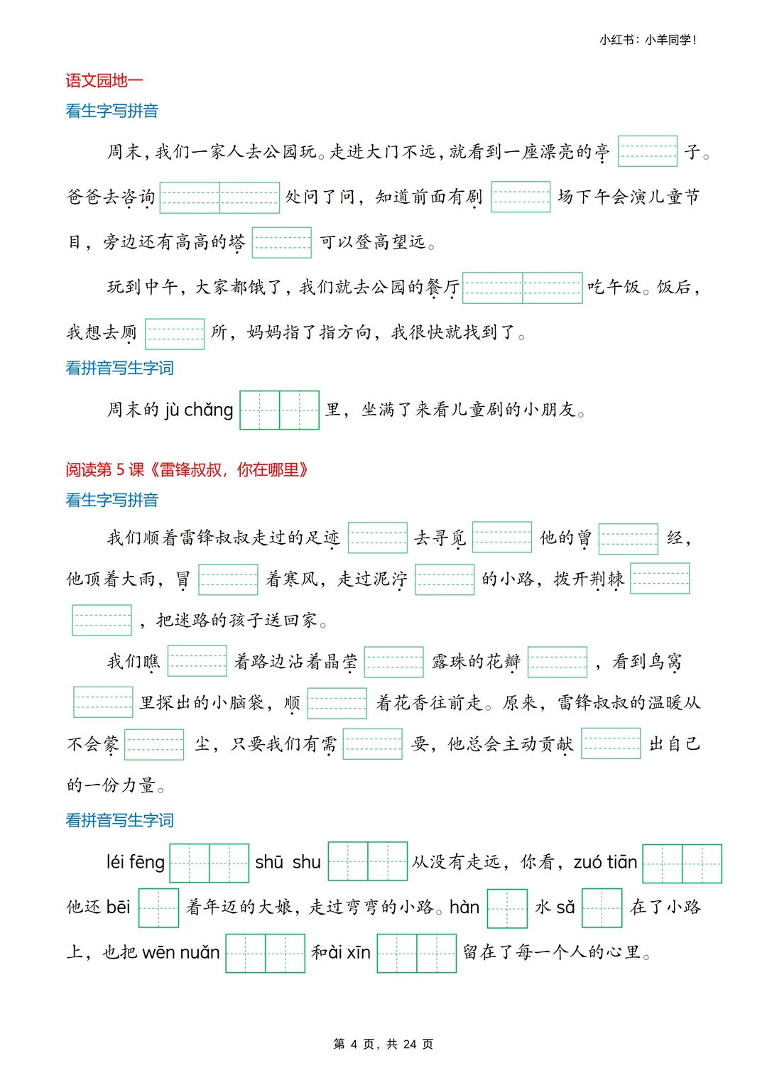1⃣ 不仅可以练习课后生字词,还可以根据“短文”练习写作。