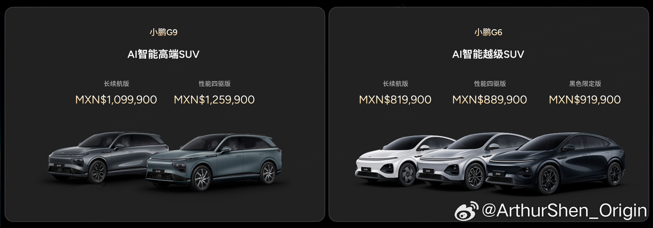 南美汽车市场 3月25日,小鹏汽车正式进入墨西哥市场,推出G6、G9两款智能车型。