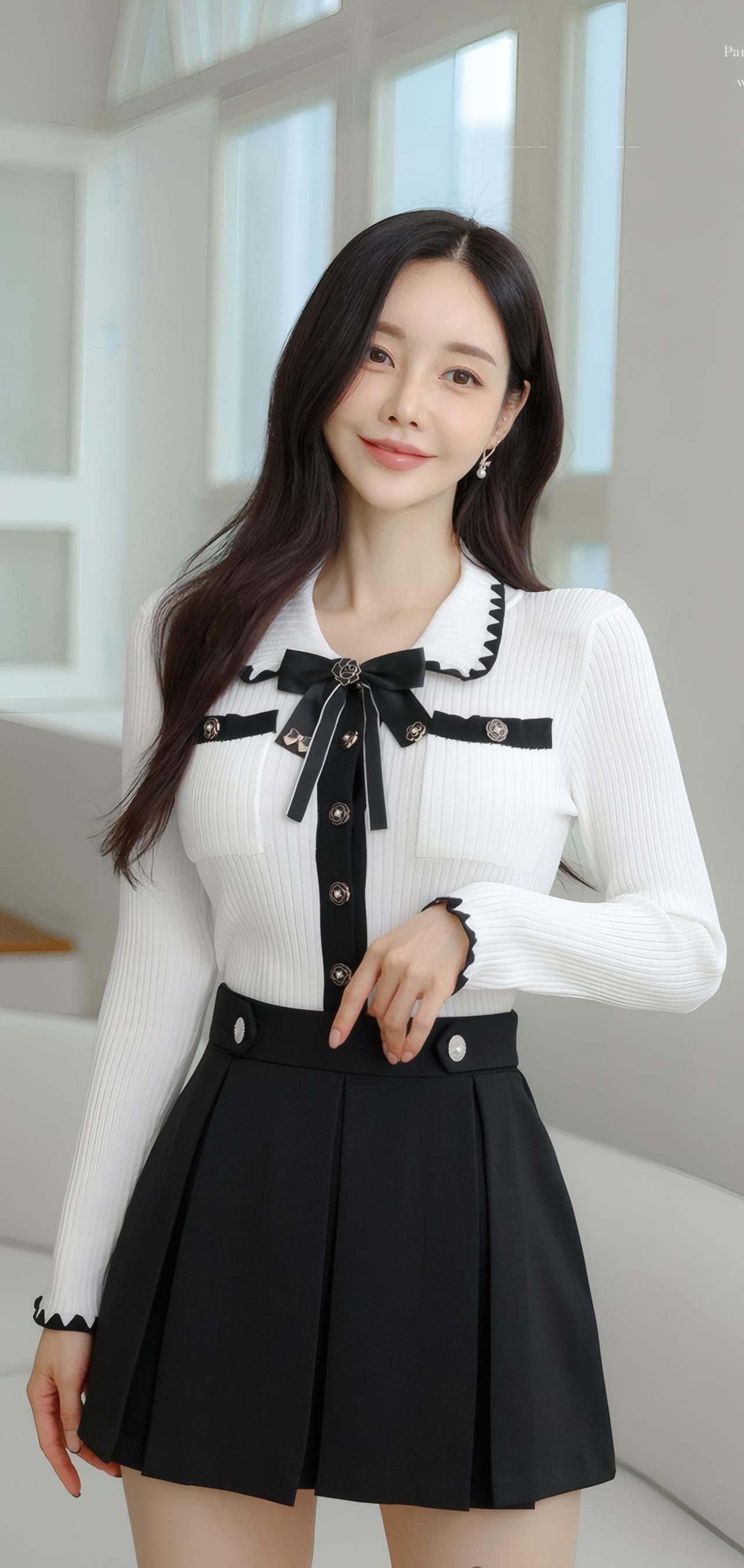 甜美学院风穿搭,白色衬衫+黑色百褶裙,少女心满满!