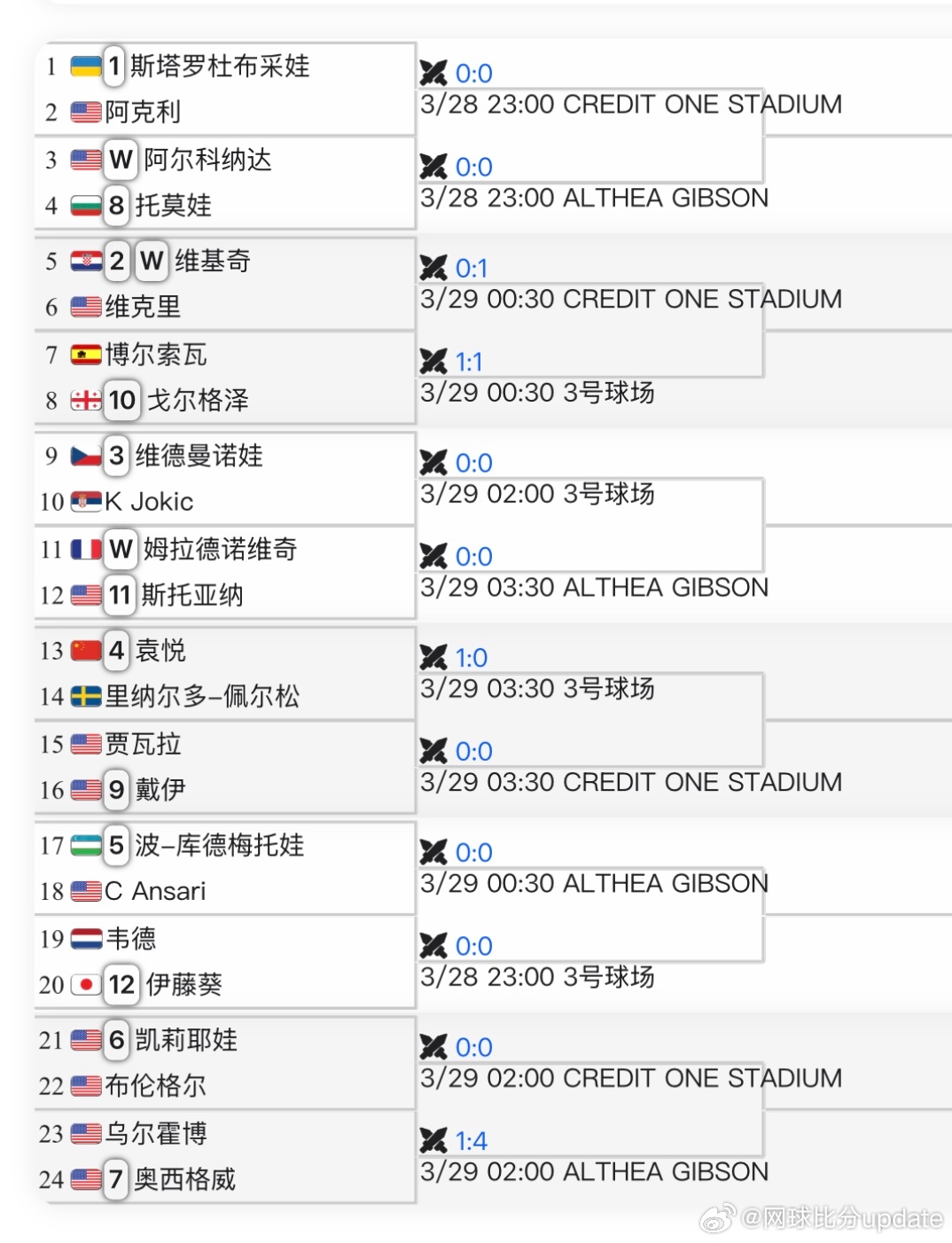 网球比分update