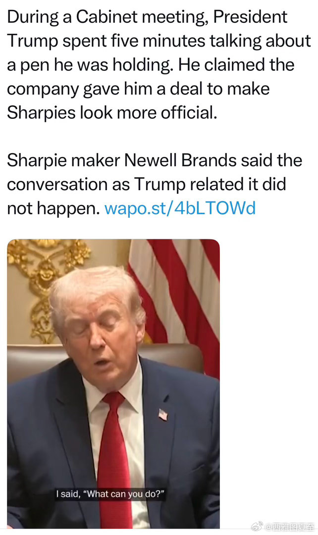 Sharpie制造商宣布:没这回事,我们公司没人跟他谈过