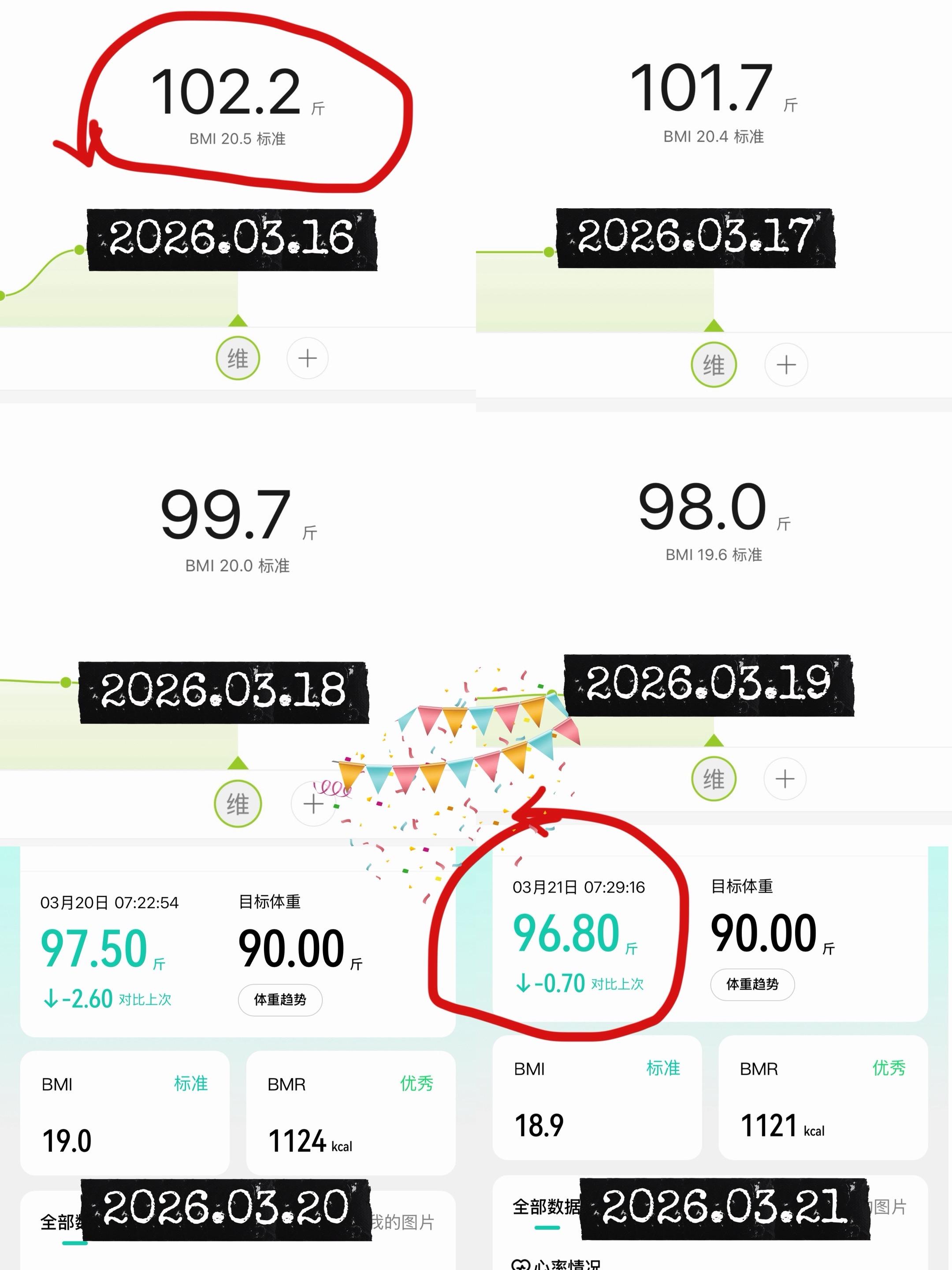 一周瘦5.2斤|不饿肚子减脂餐合集✨。26.03.16-03.21|102.2 → 96.8斤