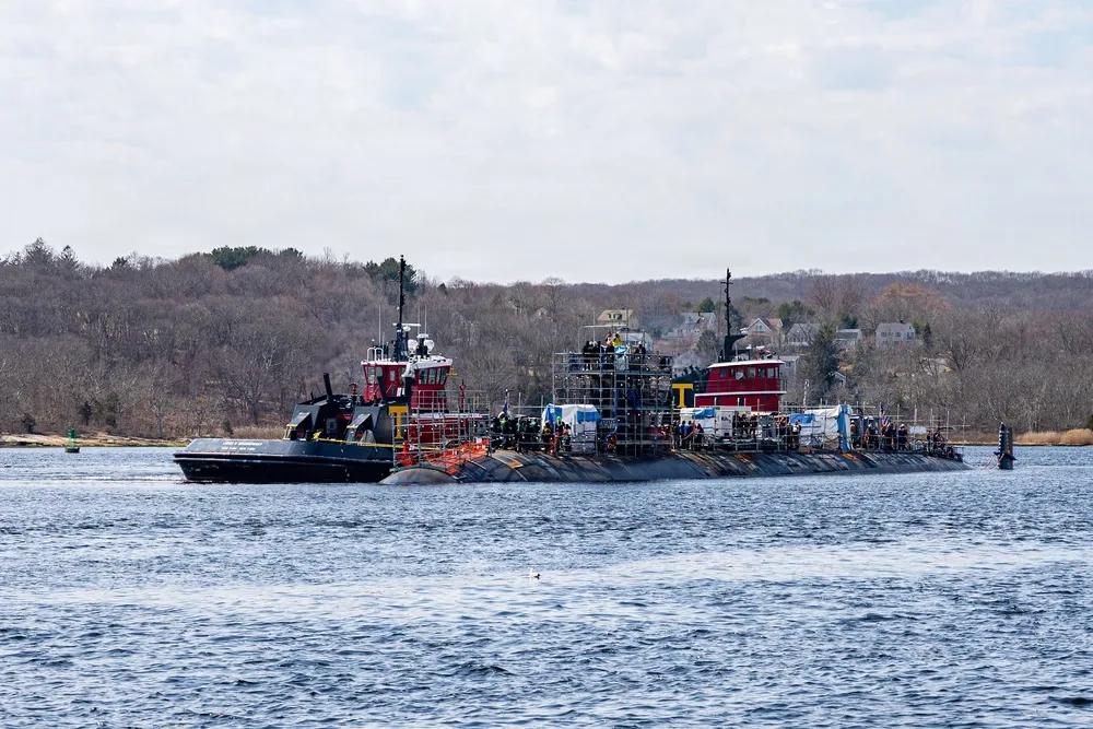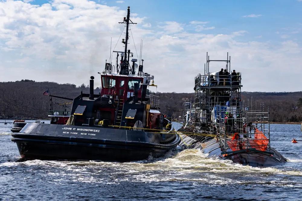 2026年3月26日,康涅狄格州格罗顿——洛杉矶级攻击潜艇奥尔巴尼号(SSN 753)于2065年3月26日星期三在康涅狄格州格罗顿的新伦敦潜艇基地,从浮动干船坞辅助修理干船坞(RDM 4)出来。奥尔巴尼号已完成机械和电气系统的维修、结构检查及更换。作为美国在攻击潜艇维护、修理和现代化方面的领导者,朴茨茅斯海军造船厂提供了应对不断变化威胁时代所需的决定性优势。它站在美国以实力实现和平承诺的前沿,交付具备战斗能力、具备致命、坚韧且随时准备取胜的潜艇。