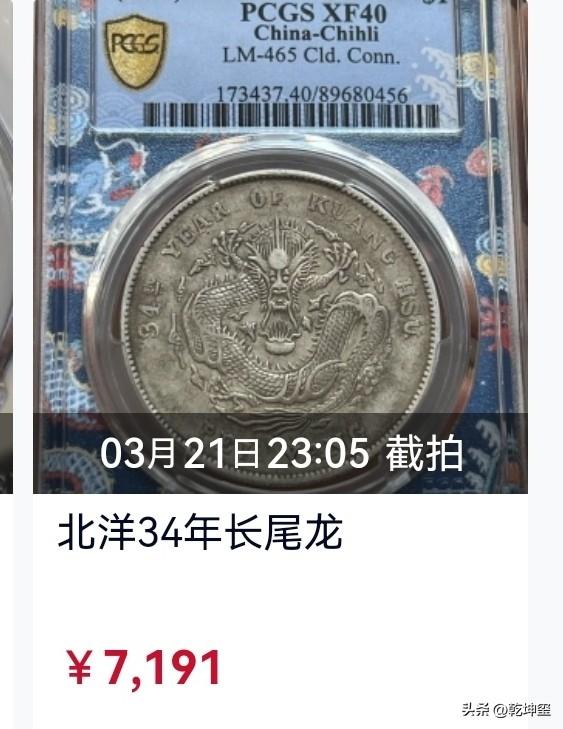 这也太离谱了? 在同一微拍店,同期上拍的一枚大清宣三银元竟然拍不过一枚北洋龙? 在北洋三品中,北洋,宣三,造总,它们之间的关系大概是两枚北洋价格是一枚宣三的价格,两枚宣三是一枚造总的身价,有些时候是差三倍。 而这枚被美评标注98的宣三竟然才拍了5202元,而北洋被美评级有分的40,竟然拍了7191,将近比宣三高2000元,真的太不可思议了吧?银元鉴定技巧 银元版别价值 北洋军阀龙版别 东三省造银元 清末银元 银元价格波动 晚清民国银元 银元价格评估 光绪年坐洋银元 银元大头龙洋 复刻军阀银元 银元真赝 宣三短须龙硬币 清末银币 银元赏析