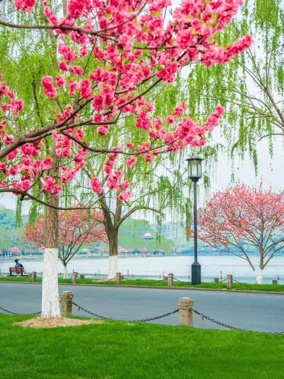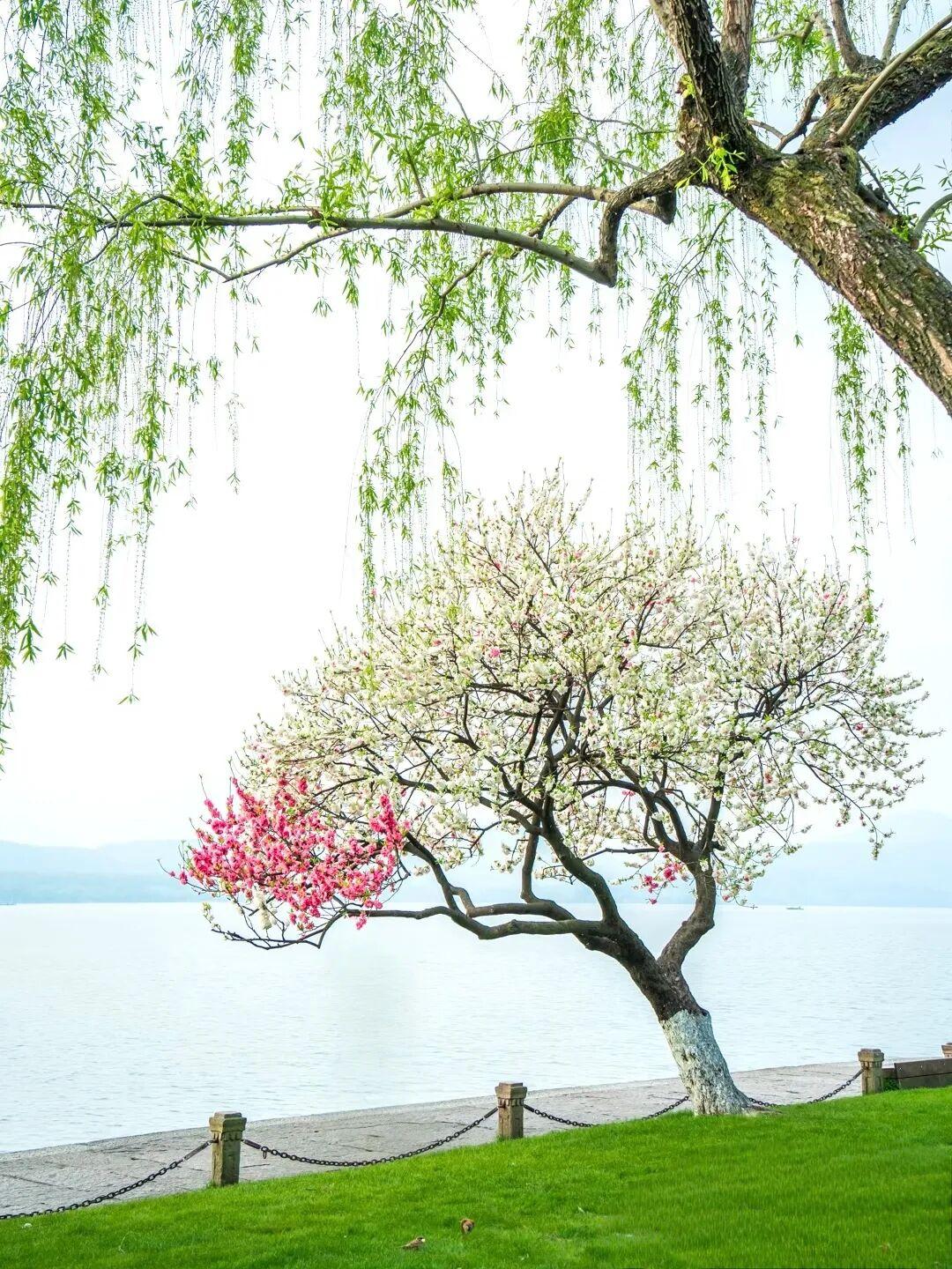 晒出你的本地生活阳春三月去我们浙江杭州西湖玩玩吧,那一株杨柳一株桃的苏堤春晓,桃