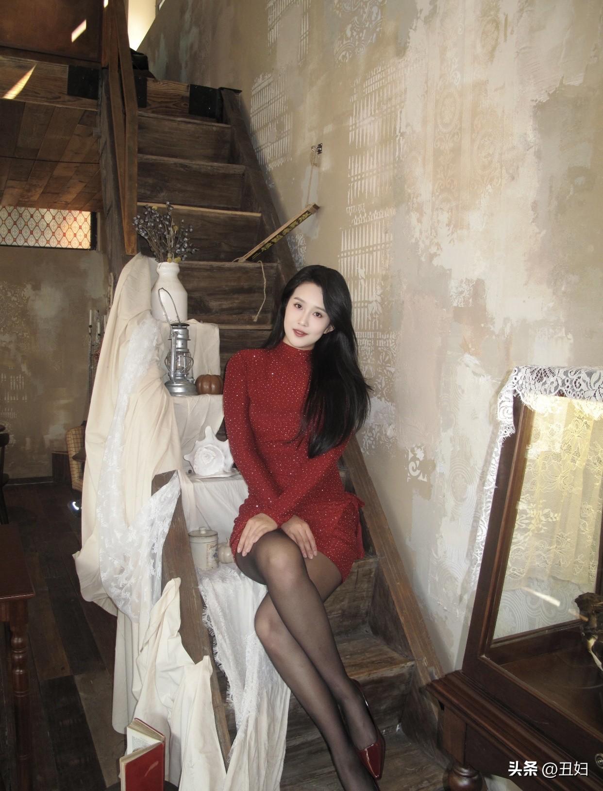 晒图笔记大赛复古风穿搭,红裙与白纱的完美结合,尽显优雅与神秘。
