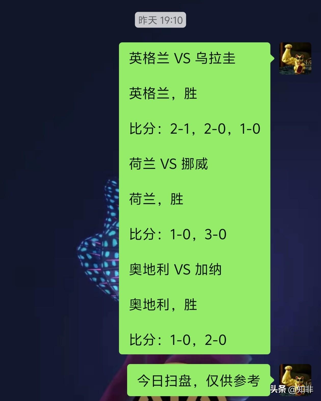 昨日文章提到荷兰队介于马伦在罗马队出色的表现,有可能会实验他踢中锋的战术效果,比赛内容证明实验失败。 面对没有哈兰德和厄德高的挪威队,世界排名第7的荷兰队踢的非常挣扎。就冲这场比赛展现出来的内容,荷兰球迷可以对世界杯降低预期了。 赛前我预计进球数是单数,所以推了1-0和3-0,最后结果2-1,看这事整的…… 再看瑞士和德国这场精彩的进球大战,维尔茨打出了他在国家队最具代表性的一场比赛。 尴尬的是斯洛特,平时不看利物浦比赛的球迷,也知道问题出在哪了,这场比赛再次证明了用不好维尔茨就是斯洛特自己的事。 有球迷调侃:利物浦球员散是满天星,聚是一坨屎。是不是挺形象的? 比赛中也暴露了德国队的防守问题,包括进攻效率还是太低了。德国队的战术打法迫切需要一个大中锋,哈弗茨当单箭头差点意思,支点作用连国骂哥都不如。 昨日扫盘3中2,荷兰和奥地利正确,英格兰错误。四场方向扫盘全部正确,澳大利亚的比赛建议也靠谱。总体发挥不错,今天周六,希望有好运。