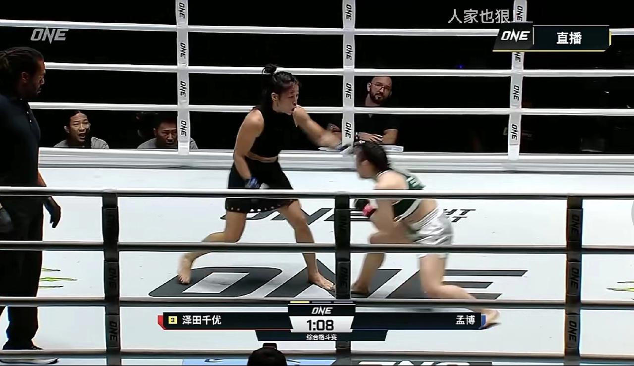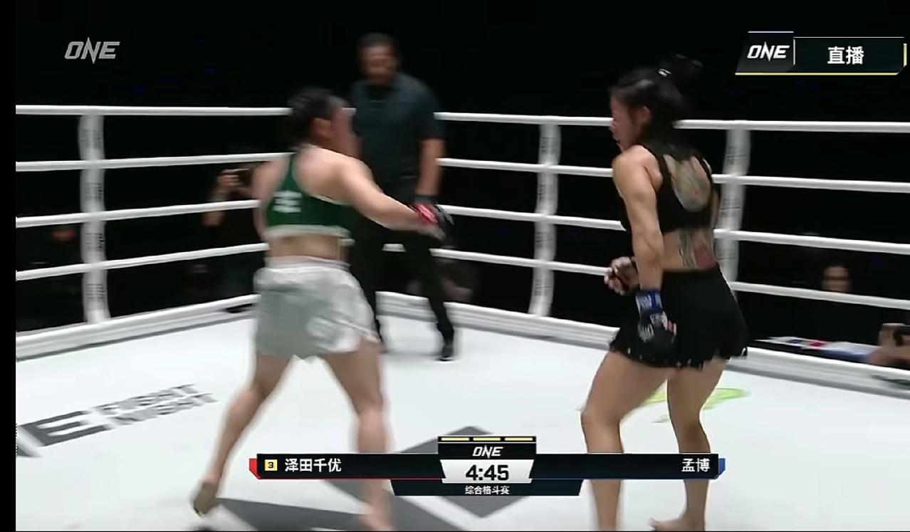 昨晚,ONE周五格斗夜中“沙漠之花”孟博三回合吊打日本选手泽田千优,一致判定获得胜利。在比赛中,孟博充分展现了她高超的技战术水平,无论是站立还是摔柔还是地面,形成了全面压制。本来以摔柔见长的泽田千优开场就是下潜摔,但是抱摔了七八次,孟博的防摔率达到百分之百,而且趁泽田千优下潜的时候还打了几个漂亮的迎击。第二回合,孟博反客为主,干脆用摔柔和对手硬刚,也照样拿捏对手。第三回合如法炮制,依然连摔带打磨的泽田千优毫无脾气,就此三回合战罢,孟博毫无悬念拿下对手取得胜利。其实孟博还是唯一一个击败过生涯初期张伟丽的人,也是一员老将了,恭喜孟博,继续加油[赞][赞][赞][点亮平安灯][点亮平安灯][点亮平安灯]