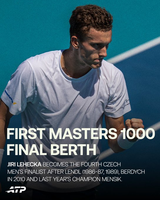 人生的第一个大师赛决赛哦,静候辛纳和兹维列夫的胜者,即时排名连升8位来到职业新高的第14位。一位捷克帅哥未能成功卫冕,另一位捷克猛将又冲出来了。