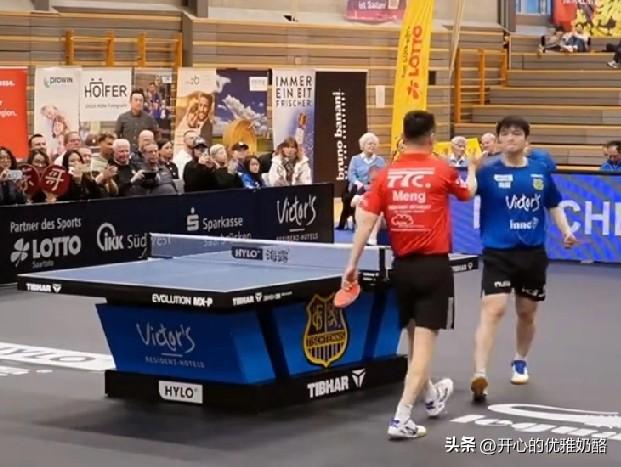 东哥又赢了,而且还是一单两分。 最好笑的是,第一盘对手不是队员,而是教练孟庆宇。 为了能和东哥过招,也忍不住上场了,尽管0-3输了(12-10、11-5、11-8),但打的很开心。 第四盘对阵菲鲁斯,更是大比分11-3、11-6、11-6横扫,帮助球队把比分扳平2-2。 尽管最后一盘双打输了,也是主力都去打世界杯,对观众来说输赢都不重要,看小胖打两盘漂亮球就很满足。 比赛结束,小胖绕场向观众席挥手致意,永远都是有礼貌的谦谦君子。 图片来自网络侵权可删。